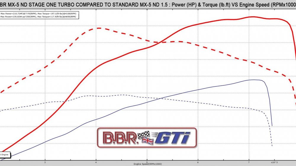 Турбонагнетатель BBR Stage 1 повышает пиковую мощность до 210 л.с. со стоковых 129 л.с., а крутящий момент вырос до 267 Нм, что на 116 Нм превышает показатель стокового двигателя. В комплект входит эксклюзивный турбонагнетатель TSX28-67R.