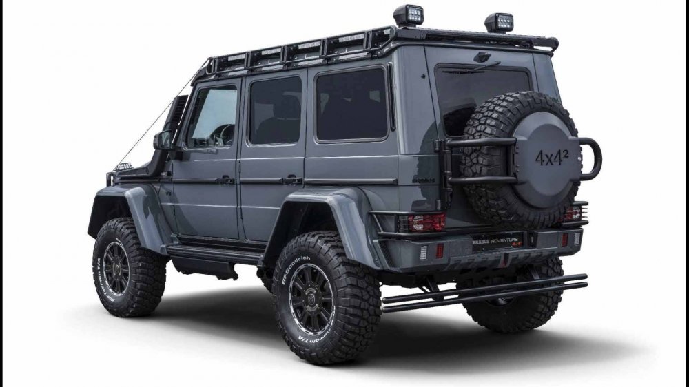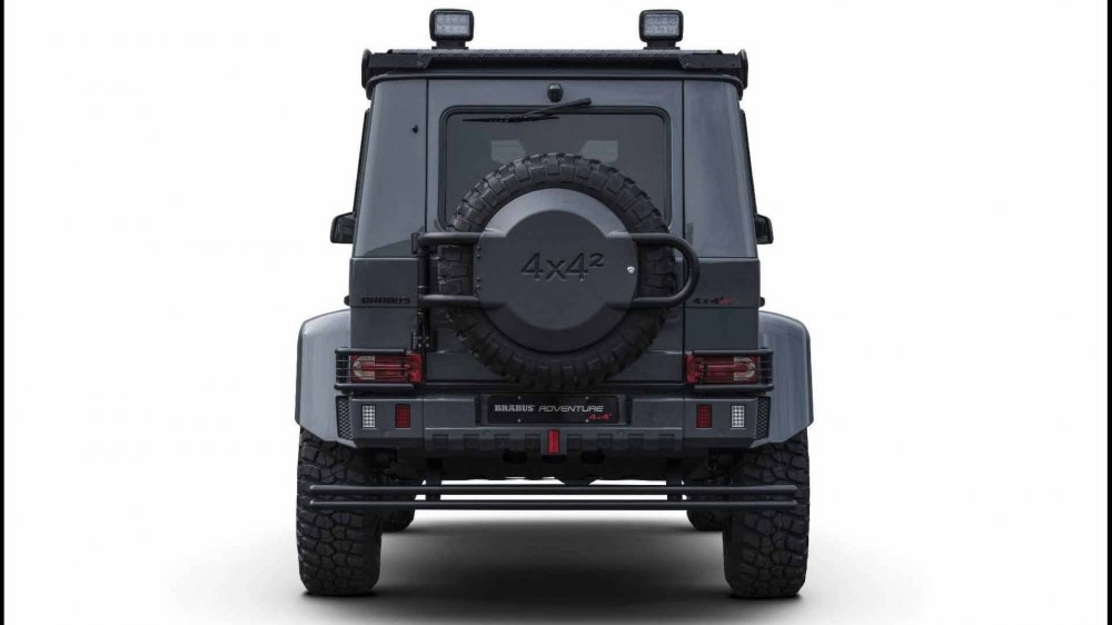 Тюнинг-программа Brabus Adventure 4x4² использует в качестве донора модель G550 4x4² предыдущей генерации. Хотя, автомобиль даже в стоковом варианте выглядит внушительно, карбоновые дополнения от тюнера делают его внешность еще впечатляющее. Пакет включает карбоновые двойные шноркели, воздухозаборник на капоте, футляр для «запаски» и полный набор кузовной отделки.