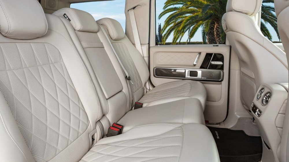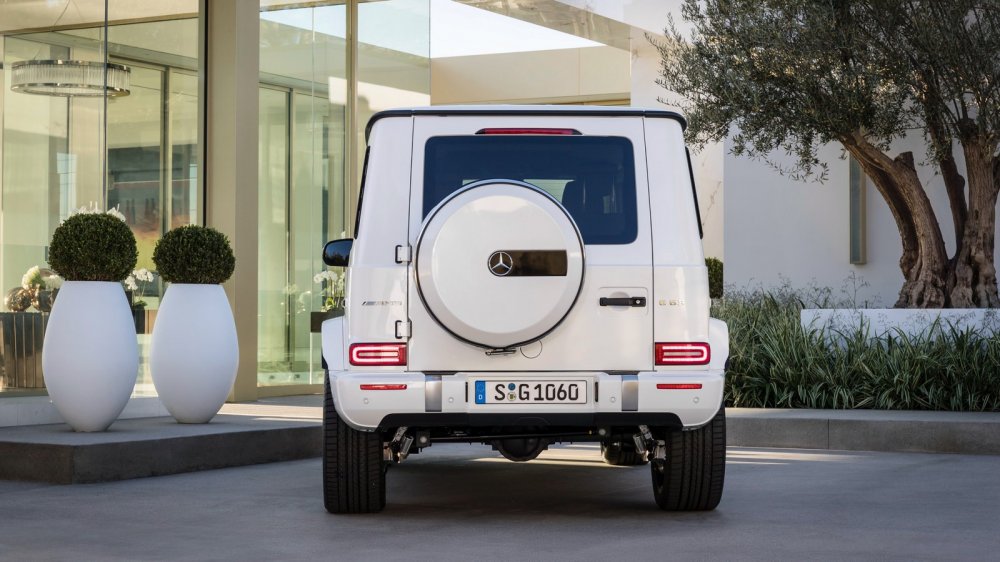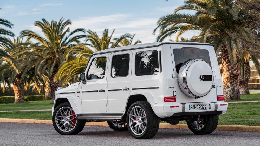 Кроме того, у G 63 двигатель сочетается с девятидиапазонным «автоматом» AMG с реальным ручным режимом работы, а еще в арсенале «заряженного» варианта имеется режим Sport Plus и адаптивные амортизаторы AMG Ride Control с изменяемыми режимами работы, постоянный полный привод и блокировки всех трех дифференциалов.