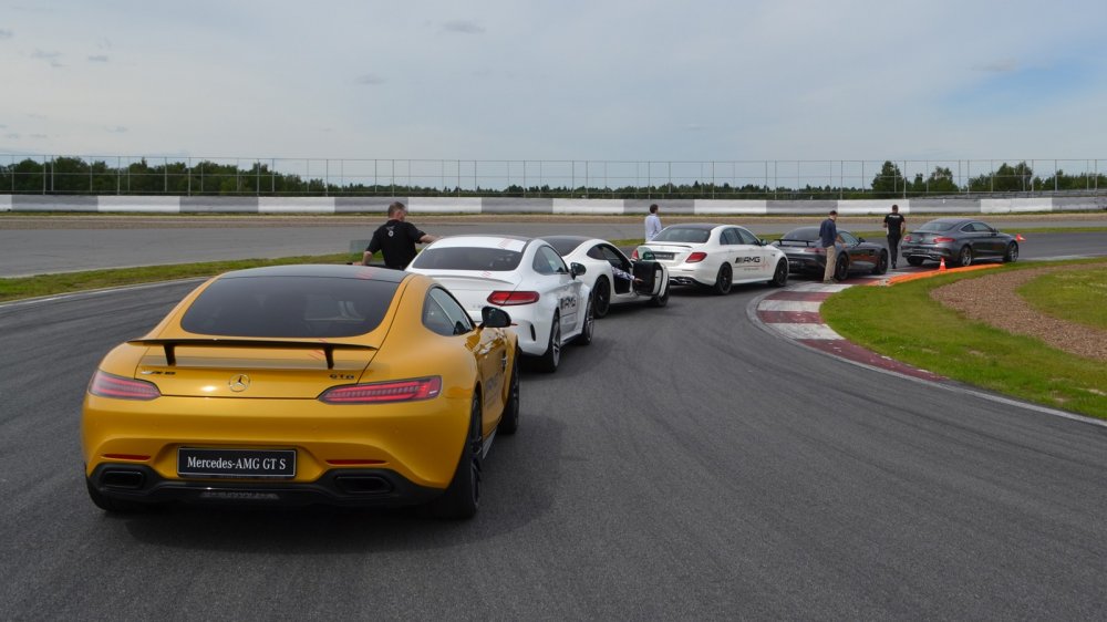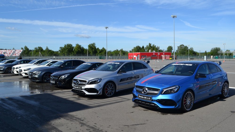 В общей сложности для заездов было предоставлено два десятка машин Mercedes-AMG, в их числе несколько экземпляров GT-S, новый E 63 S и другие подходящие для трека модели, такие как C 63 S, SLC 43, SL 63 и A 45. Специалисты Академии учили журналистов тому, как проходить повороты и связки поворотов, а также дрифтовать по политому водой асфальту.
