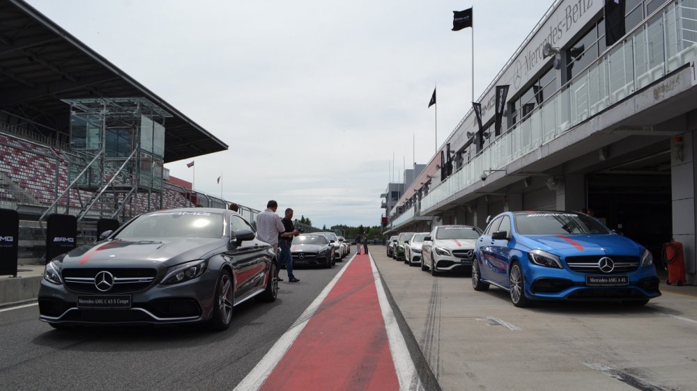 За процессом заездов гостей на «заряженных» автомобилях немецкой марки следили инструкторы гоночного и тюнингового подразделения компании Mercedes-Benz. Тренировочный день позволил продемонстрировать возможности заряженных моделей, создаваемых в ателье со штаб-квартирой в Аффальтербахе.