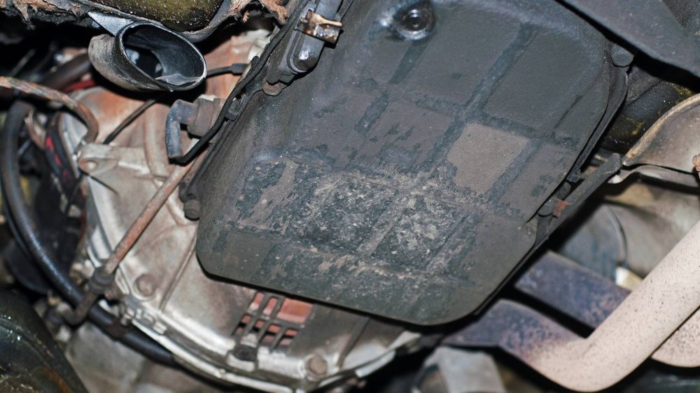 Подход к защите нижних элементов у W140 совершенно другой. Тут толком ничего не защищали, а просто делали все детали прочными сами по себе. Например, обратите внимание на глушитель. Кажется, что он скоро прогниёт насквозь. Но нет. То, что кажется страшной коррозией “банки”, на самом деле затронуло лишь её внешний защитный слой. Сам глушитель будет ржаветь ещё несколько лет.