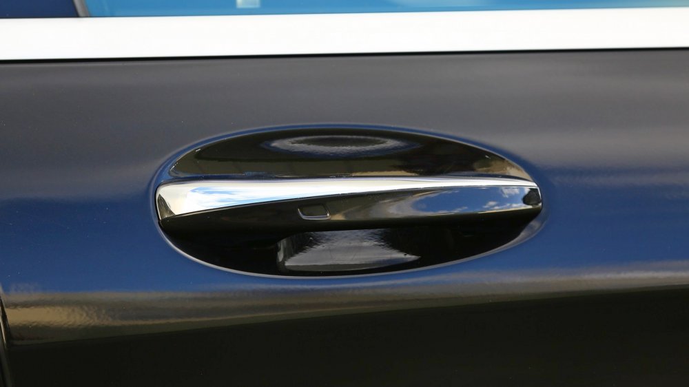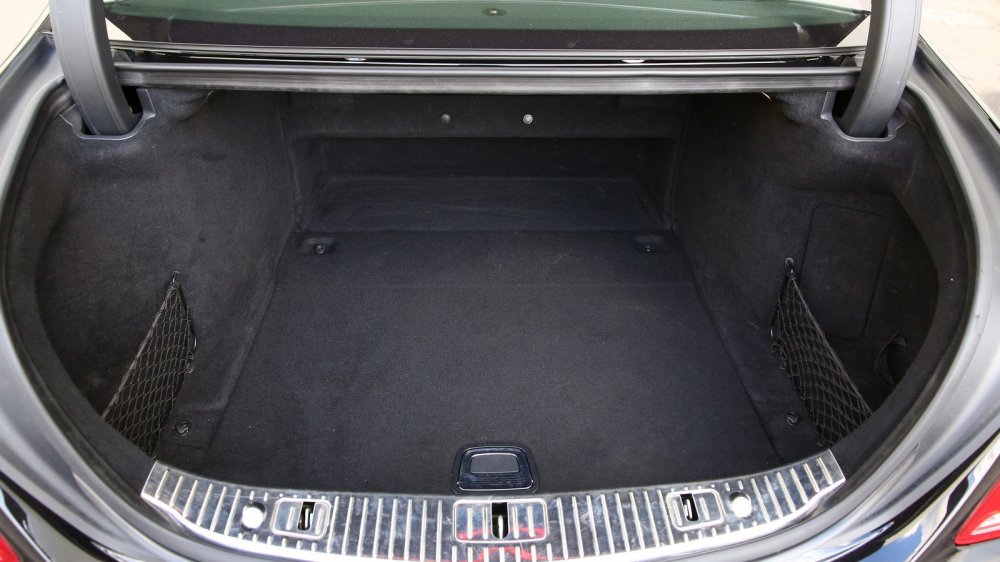 Следующая интересная вещь – пластиковая ручка для открывания багажника, которая выдвигается при нажатии на его кнопку. У W222 тоже есть свои прелести в открывании багажника, но они не такие “честные”.