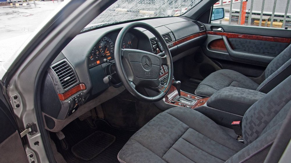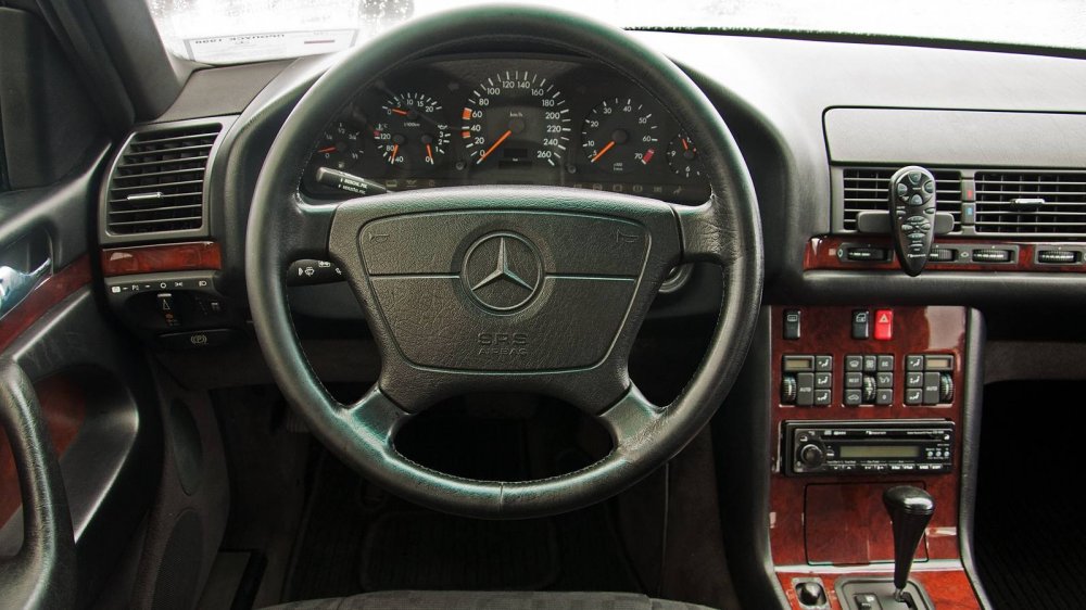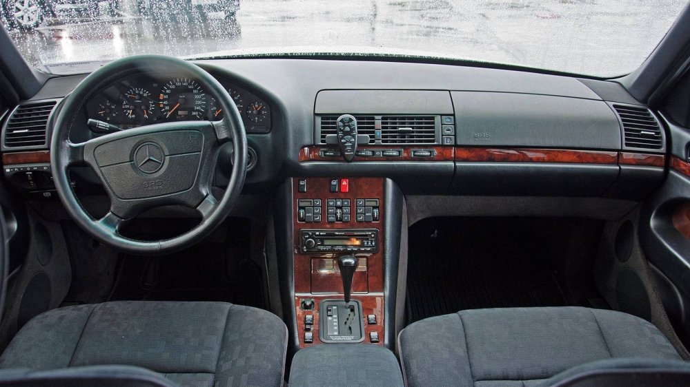Салон нашего W140 прост как три копейки. Конечно, по сравнению с топовыми версиями, а вот какой-нибудь современный Киа Рио в такой же начальной комплектации при сравнении с Мерседесом может сгореть от стыда (правда, сравнивать их было бы глупо).