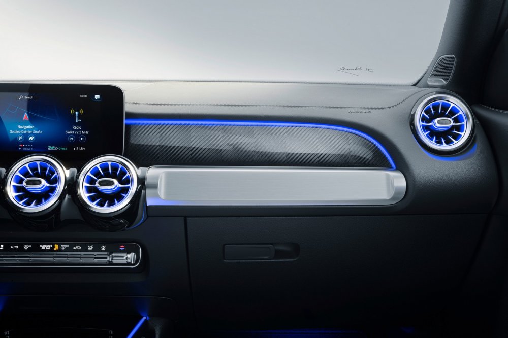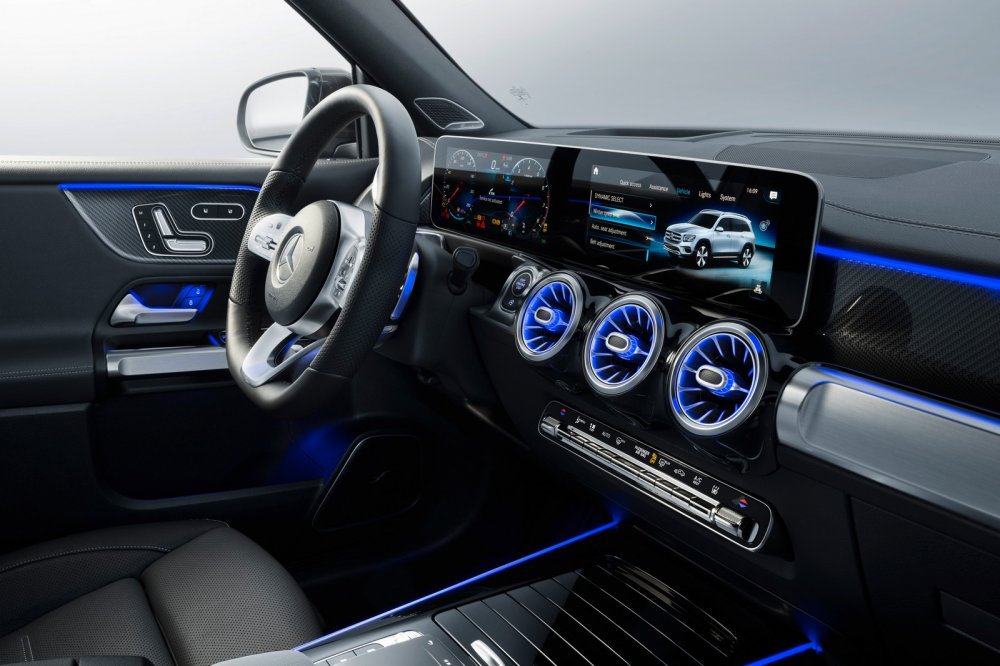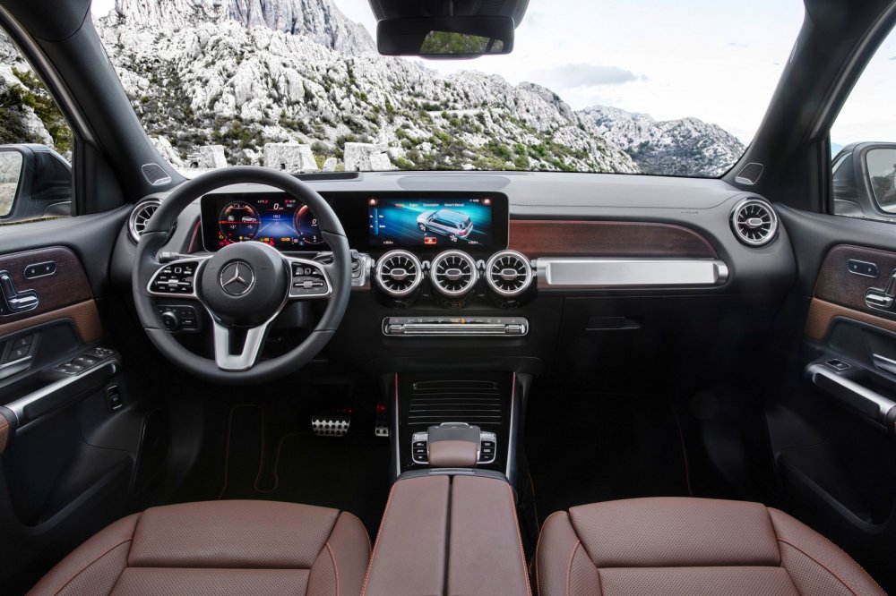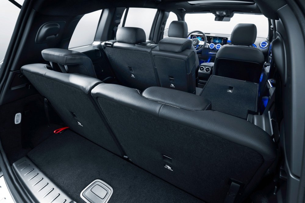 Daimler называет Mercedes-Benz GLB компактным кроссовером, который займёт в модельной линейке нишу между GLA и GLС, но на деле это среднеразмерный SUV c колёсной базой 2829 мм, длиной кузова 4634 мм, шириной 1834 мм и высотой 1658 мм. Поперечное расположение силового агрегата, высокие стойки кузова и аквариумные окна делают салон GLB более просторным внутри, чем у старшего по иерархии GLС, а за доплату предлагается третий ряд кресел, рассчитанный на пассажиров ростом до 168 см. Также на галёрку можно установить два детских кресла, ещё два – в среднем ряду, итого родители смогут взять в дорогу сразу четырёх ребятишек. Вот только для багажа при таком размещении практически не останется места – за третьим рядом уместится лишь пара рюкзаков в вертикальном положении. Производитель указывает объём багажника лишь для 5-местной версии: 560 л, при этом второй ряд можно двигать вперёд-назад на дистанции 140 мм, и в крайнем переднем положении для багажа доступны дополнительные 179 л. Если полностью сложить второй ряд, то объём грузового отсека увеличится до 1755 л.