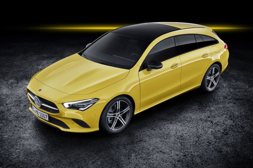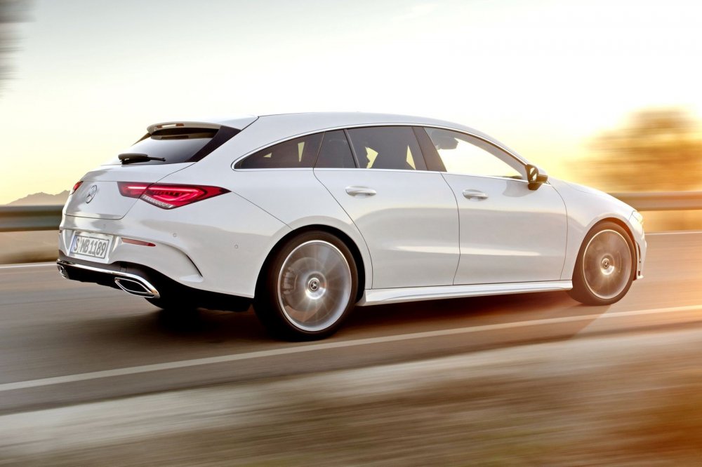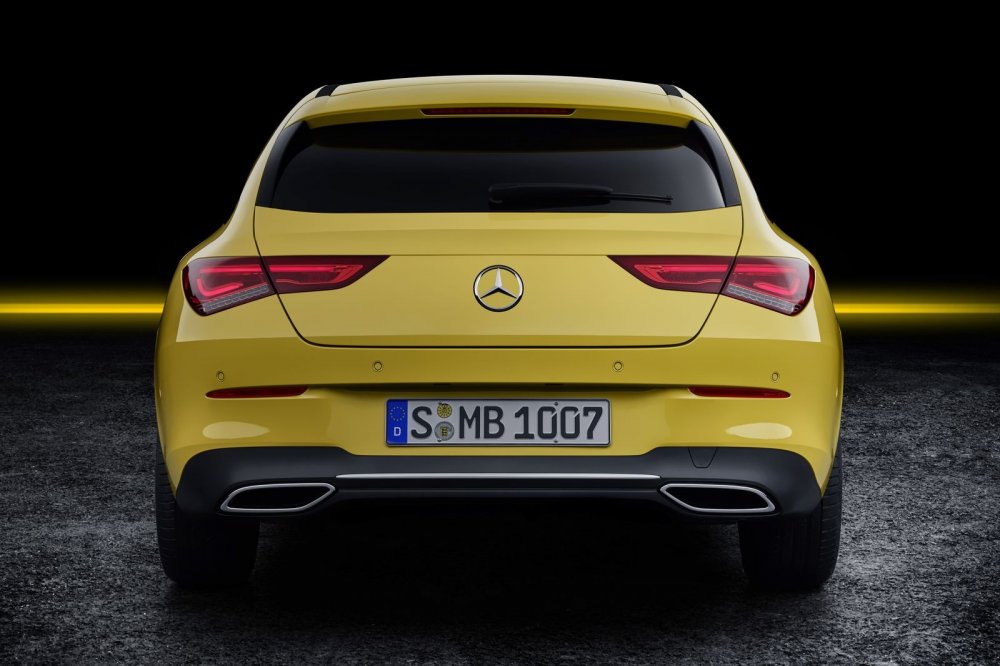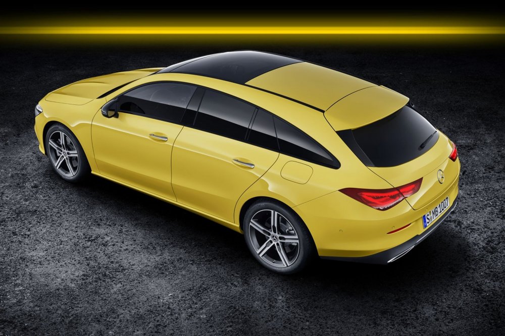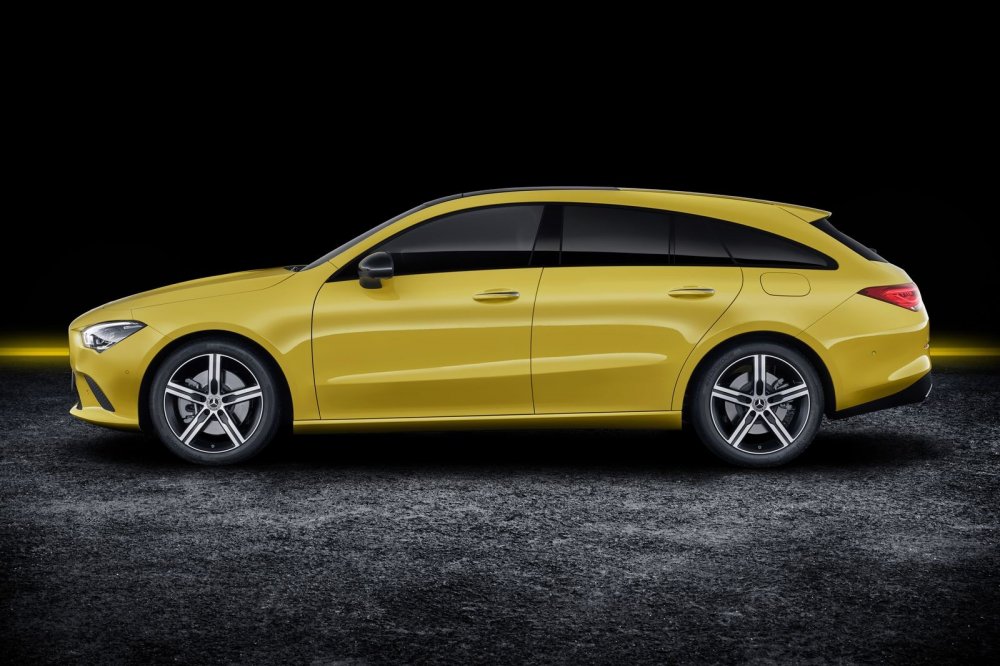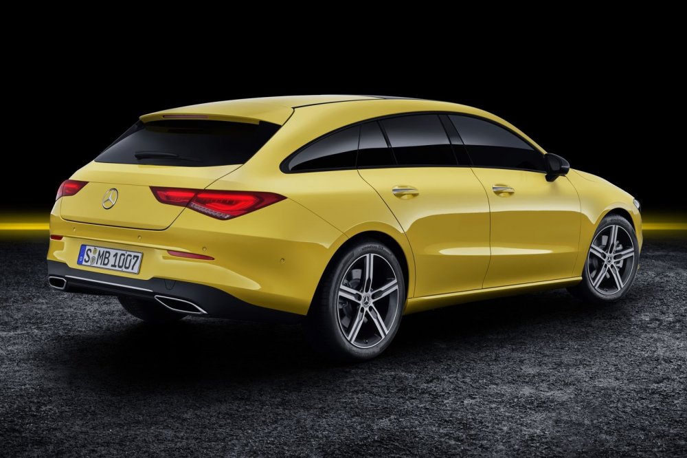Внешнее оформление нового шутинг-брейка зависит от выбранного стайлинг-пакета – Progressive или AMG Line, в последнем случае у автомобиля будут более агрессивно выглядящие бамперы и пороги. По сравнению с предшественником CLA Shooting Brake стал крупнее практически по всем направлениям: колёсная база выросла на 30 мм до 2729 мм, габаритная длина теперь 4688 мм (+48 мм), ширина 1830 мм (+53 мм) и лишь высота уменьшилась на 2 мм до 1442 мм для пущей элегантности профиля. Аэродинамическая проработка кузова позволила довести коэффициент Сх до 0,26, тогда как у четырёхдверного CLA он составляет 0,23.