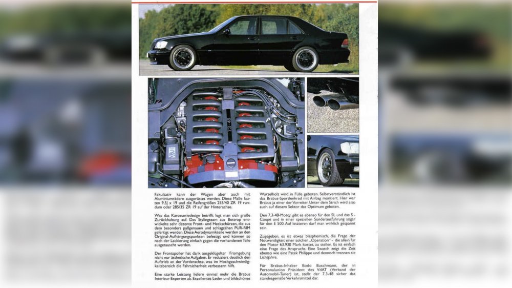 Пока в AMG точили зубы и блоки для Zonda, их коллеги в Brabus тоже не сидели сложа руки. Накопив изрядно опыта работы с мерседесовскими моторами с 1977 года, немцы встретили появившийся в 1991 двенадцатицилиндровый M120 с самым искренним восторгом – в том смысле, что они немедленно его разобрали и расточили. С объемом стесняться не стали – так и появился 7,3-литровый агрегат с кованой поршневой, доработанными впуском и выпуском и прочими «приложениями рук», которые довели его мощность до 574 л.с., а крутящий момент – до 772 Нм! Только не забывайте, что для достижения пикового момента мотор нужно будет раскрутить до 5 750 об/мин – он ведь атмосферный.