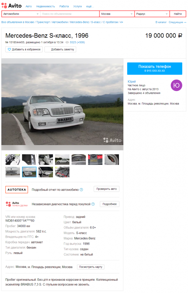 Настоящий Mercedes для вас – это непоколебимый, как небесная твердь, S-class в кузове W140? Да не какой-нибудь трехлитровый дизель, а настоящий V12 с кошмарным рабочим объемом в 6 литров? Тогда у нас есть хорошие новости: рабочий объем этого мотора мог быть еще кошмарнее. Вот живой пример – W140 от Brabus: 7,3 литра и 574 л.с. Вместе с нашими друзьями из Авито Авто прикидываем, есть ли смысл инвестировать свои миллионы в такой автомобиль.