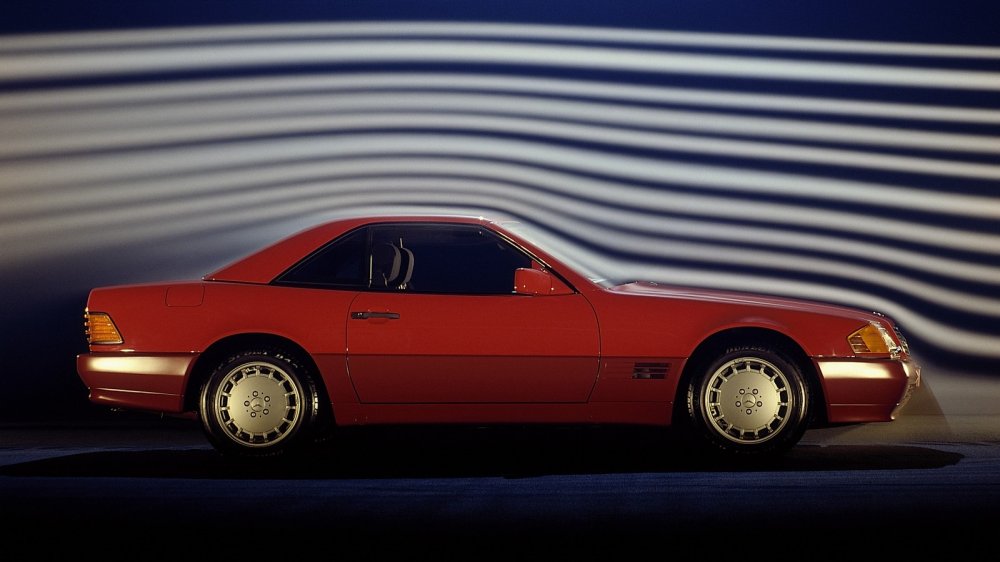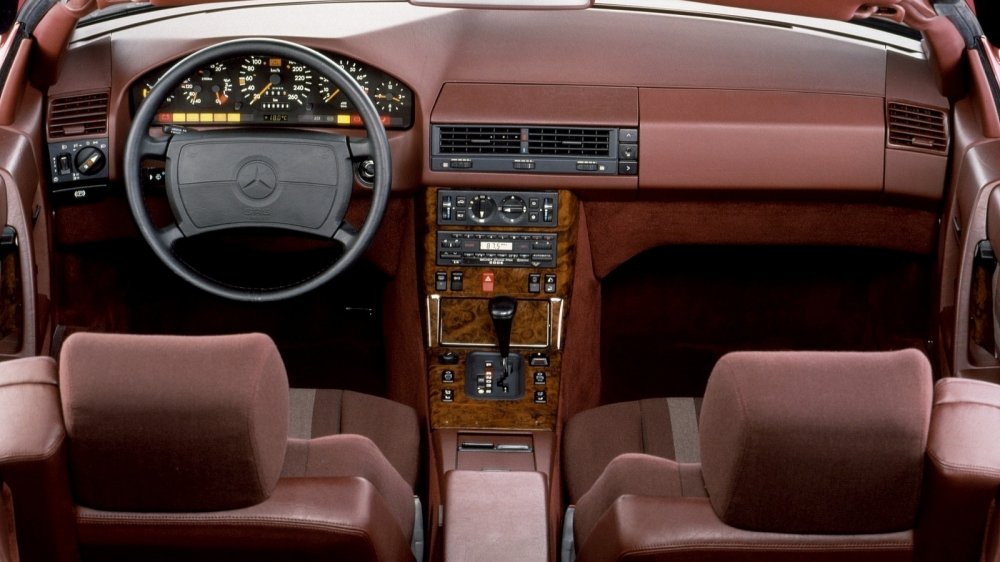 Всем своим видом SL говорит, что его дизайном начали заниматься еще в восьмидесятые – годы, когда до округлостей было далеко, а угловатые формы подчеркивали строгость и качество. Кабриолет был построен на укороченном шасси легендарного W124 – того самого, который чуть позже дал начало имени E-klasse. Однако несмотря на то, что дебютировал R129 на Женевском автосалоне 1989 года, он получил немало продвинутых технологических решений как по части оснащения, так и в области безопасности. К примеру, на последнюю работала скрытая дуга безопасности, автоматически выдвигающаяся при перевороте, чтобы спасти обитателей салона, а любителей технических штучек радовала дорогая музыка, опциональный штатный телефон, ксеноновые фары, датчик дождя и другие «фишки».