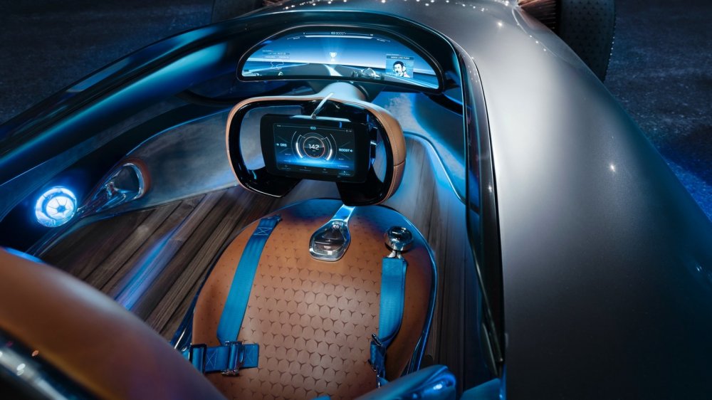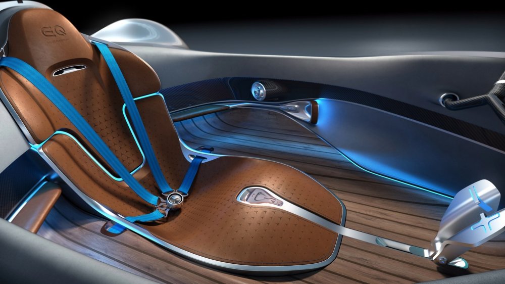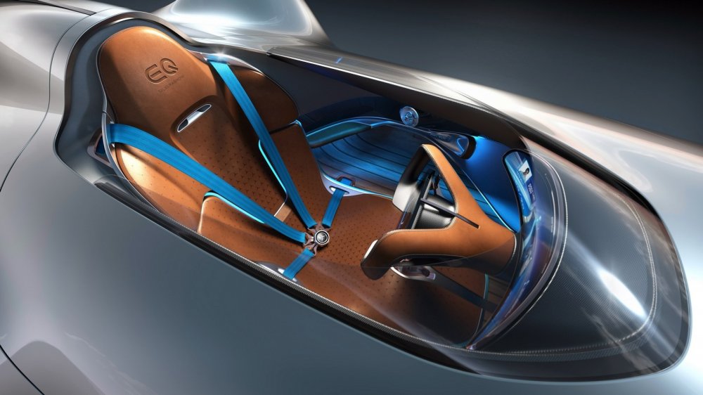 EQ Silver Arrow, как и оригинальный W125, получил одноместный кокпит, внутреннее пространство которого оформлено в футуристическом стиле, но с помощью «роскошных» классических материалов – дерева и кожи. Внутри каскадом установлены два дисплея – большой трапециевидный заменил переднюю панель, а еще один прямоугольной формы и поменьше размером, интегрирован в руль гоночной формы.