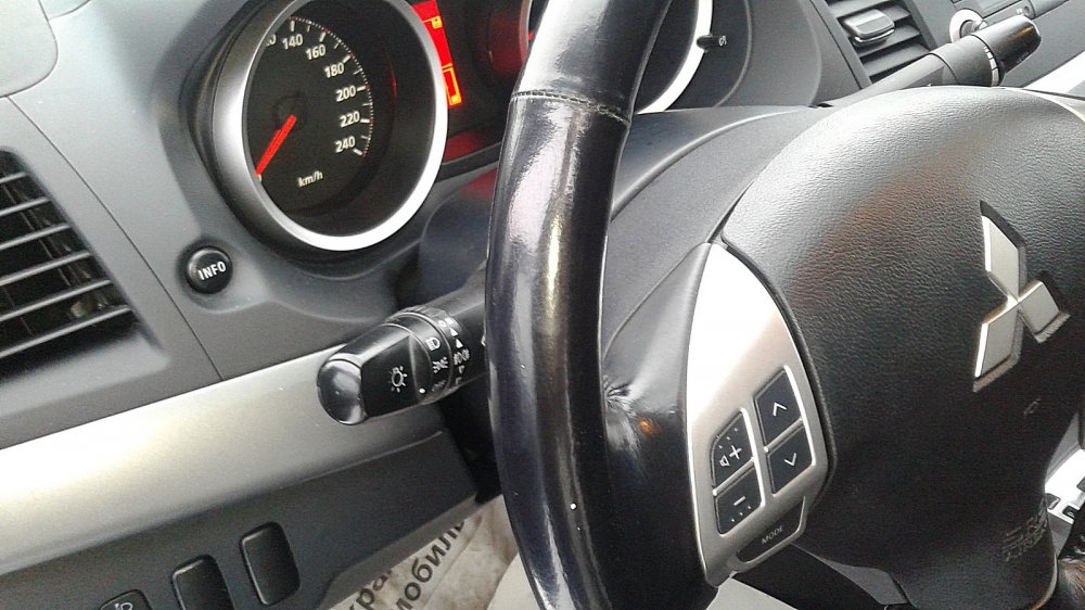 Нашли Лансер 2012 года. Продает владелец, пробег 111 тысяч километров, довольно популярная середнячковая модификация 1.6 на «автомате». 440 тысяч рублей, плюс возможность поторговаться «у капота». Несколько двойных окрасов для 6-летнего автомобиля – не самый большой сюрприз, а повод для небольшого торга. У нашего героя оказался двойной окрас левой передней двери (250 мкм), левой задней двери (340 мкм), левого заднего крыла (210 мкм) и капота (190 мкм). Еще один минус по кузову – разбитая противотуманка.