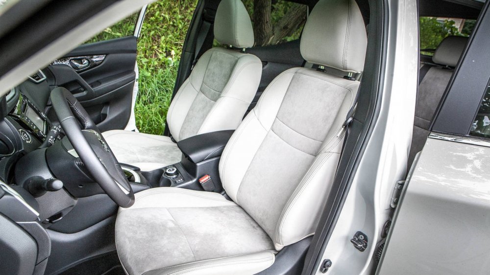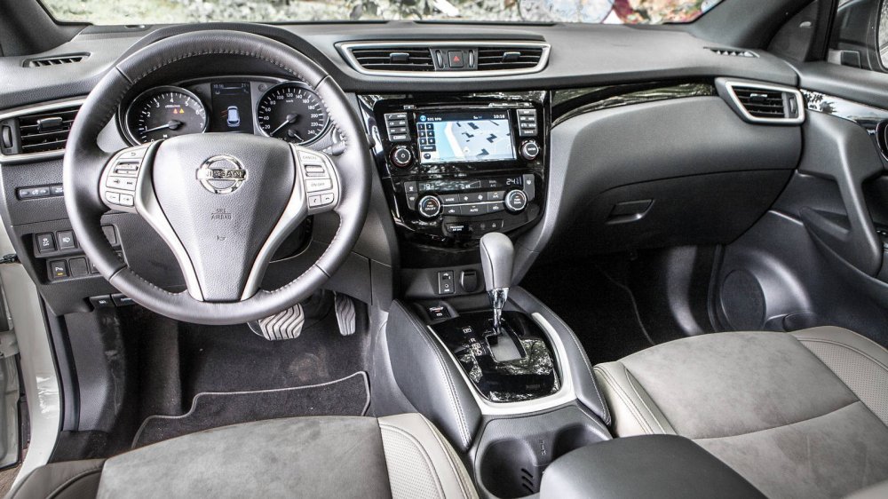 Qashqai не пытается прикинуться спортсменом, так что боковая поддержка выражена ровно в той мере, чтобы водителя и переднего пассажира не мотало в поворотах, причем часть этих обязанностей принимает на себя нескользкая алькантара. В целом салон выглядит нарядно и очень воздушно, особенно у комплектаций с панорамной крышей. Но вот модные панели под рояльный лак мне не очень понравились: на них и пальчики остаются, и пыль мгновенно садится, в результате создается ощущение некой неряшливости. И уж совсем неудачно смотрится декоративная накладка на руль, выполненная из пластика «под алюминий». Этот пластик выглядит до неприличия дешево и производит впечатление пресловутой «китайщины с алиэкспресса». Обещают, что у рестайлинговой версии будет совсем другой руль, более элегантный и эргономичный.
