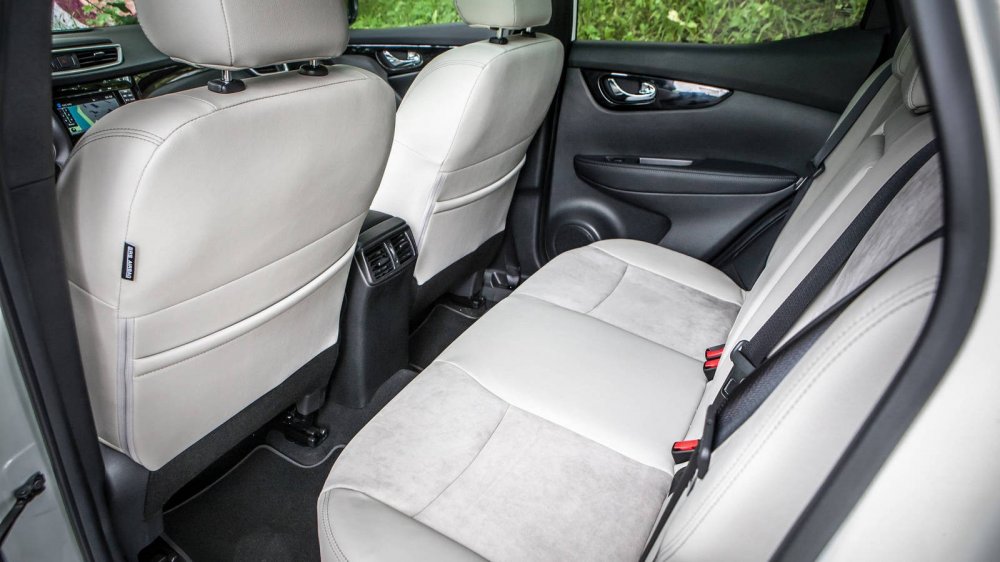 Салон Nissan Qashqai в чем-то существенно проще и, я бы сказал, традиционней. Но в целом — все на уровне. Есть тут и мягкий пластик передней панели, и качество сборки, и медиасистема Nissan Connect 2 с семидюймовым сенсорным экраном, собственной навигацией, отнюдь не исключающей возможность интеграции смартфонов. Приборы — очень хорошо читаемые, расположенный между аналоговыми циферблатами пятидюймовый дисплей бортового компьютера по информативности не уступает экранам смартфонов… Обтянутые бежевой алькантарой в сочетании с экококожей сиденья и шире, и удобней сидений Eclipse Cross.