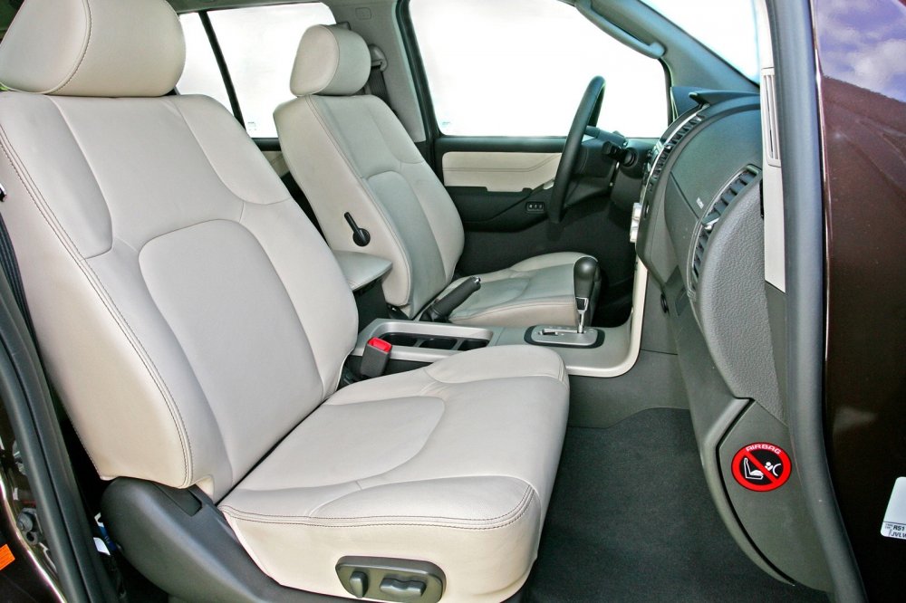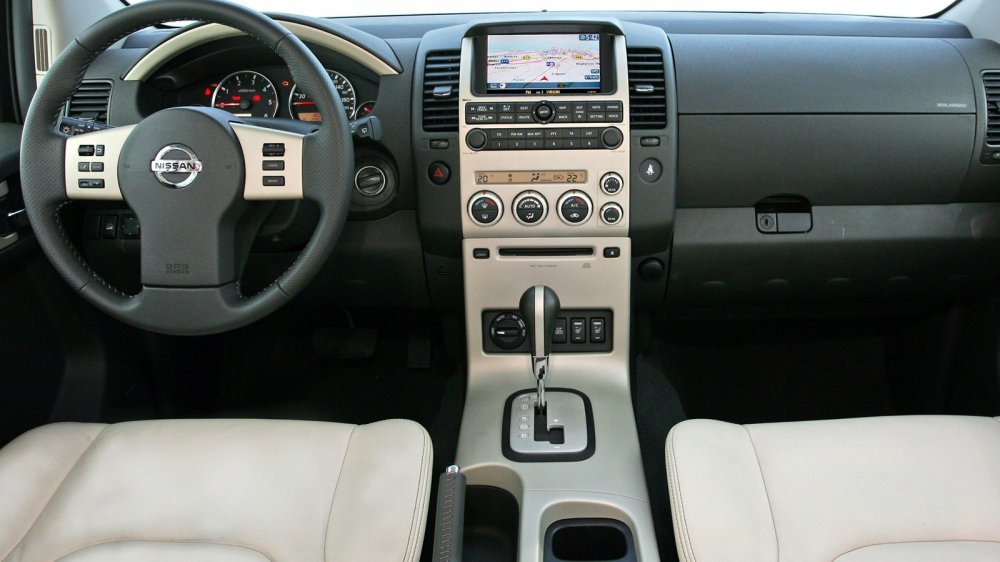 Есть в автомобиле и вполне качественная медиасистема Bose с навигацией, но карт России нет (эту ситуацию, правда, исправили в ходе рестайлинга 2010 года). Перчаточных ящиков — аж два, но сделаны они так, что туда могут поместиться разве что две пары перчаток, а вот инструкция по эксплуатации автомобиля уже не влезает. Причём под сиденьями полно свободного пространства, но никаких дополнительных емкостей там не предусмотрено. Центральный бокс-подлокотник сильно отодвинут назад, положить на него руку не получается, зато есть электропривод регулировок переднего ряда сидений с памятью. И тут стоит вспомнить, какой рынок считался главным для Pathfinder. Вспомнили? Правильно, американский! А в американском автомобиле салон должен быть, говоря словами Маяковского, «на одном винте, весь электро-динамо-механический», и обивка должна быть кожаной хотя бы с виду, а вот на пластике можно сэкономить.