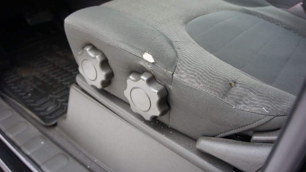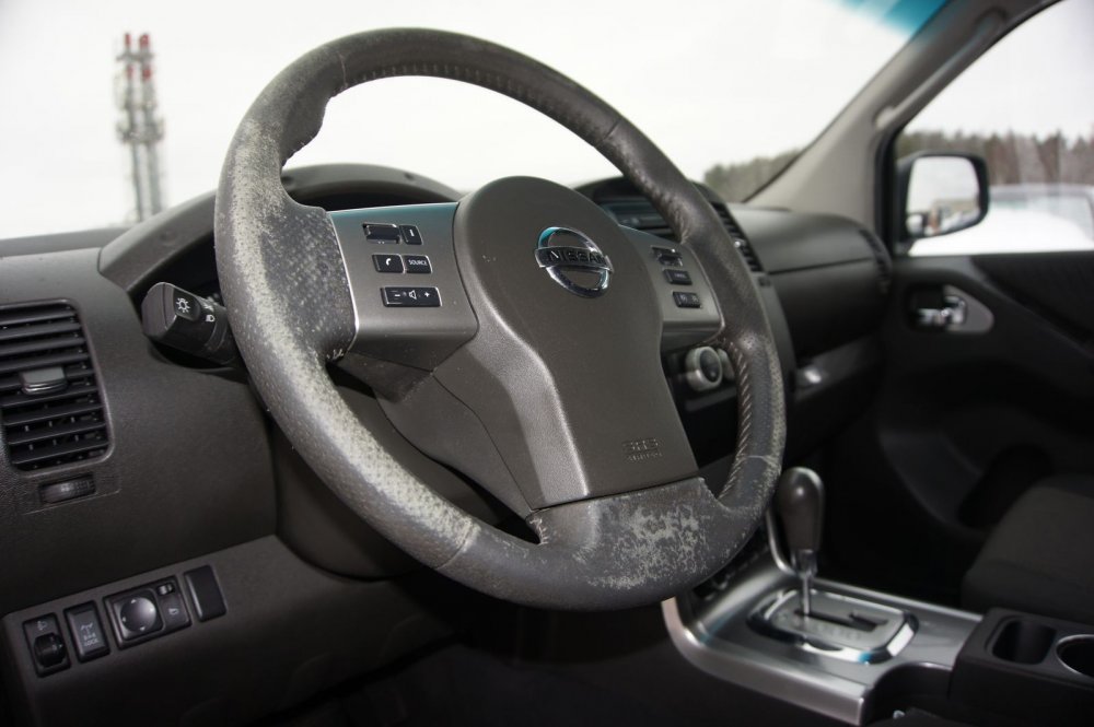 Ну и небольшие недочеты есть, разумеется, по мягкой отделке – куда ж без них при пробеге 260 000... Слегка пострадало (некритично) кресло водителя и обшарпался руль. Хозяин, конечно, барин, но на утилитарной машине, думается, будет ошибкой погружаться с головой и кошельком в перетяжку и отделку. Установить качественные чехлы на кресла переднего ряда, «бублик» на руль – и забыть о проблеме! Ну или поискать недорогой и более-менее свеженький руль от Navara/Pathfinder на разборе.