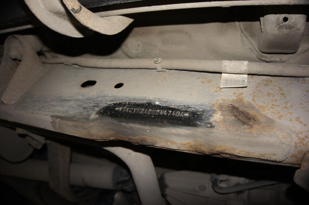Номер рамы на Navara расположен на правом лонжероне, практически между осей. Видно, что он также не был ничем дополнительно защищен, однако читаемость – 100-процентная, и за все время эксплуатации машины он не пострадал. Тем не менее новому владельцу будет необходимо номер очистить, обезжирить бензином и покрыть как минимум аэрозольным «мовилем» в несколько слоев.