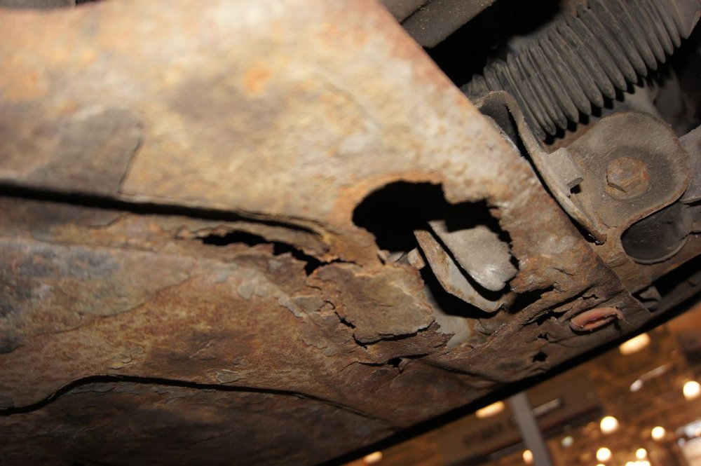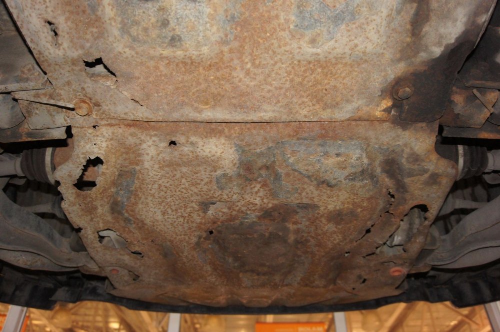 Версий причин такого феномена напрашивается две. Во-первых, нештатная защита могла быть отштампована из откровенно паршивого металла, годного разве что для изготовления урн на тротуарах. А второй причиной может быть некий катодный эффект из-за разности потенциалов. Возможно, состав стали защиты сделал ее «протекторным анодом», и своим интенсивным ржавлением она как раз активно оберегала от коррозии кузов и раму…
