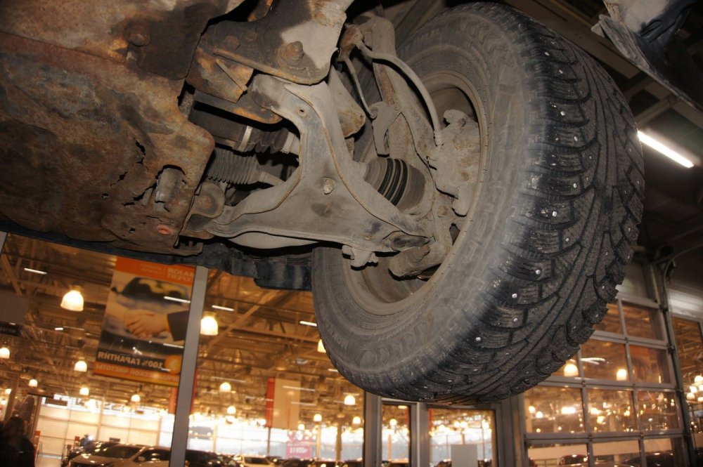 Передняя подвеска – традиционная для утилитарных полноприводников: два рычага, удерживающих поворотный кулак через шаровые опоры, пружинно-амортизаторная стойка и стабилизатор поперечной устойчивости с коротенькими «косточками». При этом, несмотря на простоту и кондовость, передняя подвеска Nissan Navara не славится особенной долговечностью. Частенько требуют внимания сайлентблоки и шаровые опоры рычагов, а также подшипники ступиц. Сейчас подвеска обслужена и ухожена (согласно базе данных, прежний хозяин в разные годы менял в ней понемногу то одно, то другое). Но будущему владельцу неплохо бы знать, что официальные методы ремонта явно обременительны для кошелька, ибо и сайлентблоки, и шаровые опоры по каталогу идут только в сборе с рычагом… Если же отбросить дилерский регламент, то все необходимое приобретается отдельно и недорого и перепрессовывается в старые рычаги. В том числе и в гаражных условиях.
