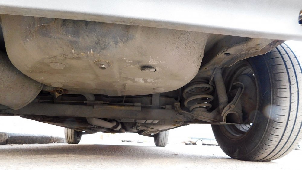 Откидной экранчик камеры помогает взглянуть на мотор снизу. Масляный фильтр «жигулёвского типа» стоит прямо за передним спойлером, так что при замене моторного масла можно не лезть под машину. Достаточно присесть на корточки и правильно протянуть руку.