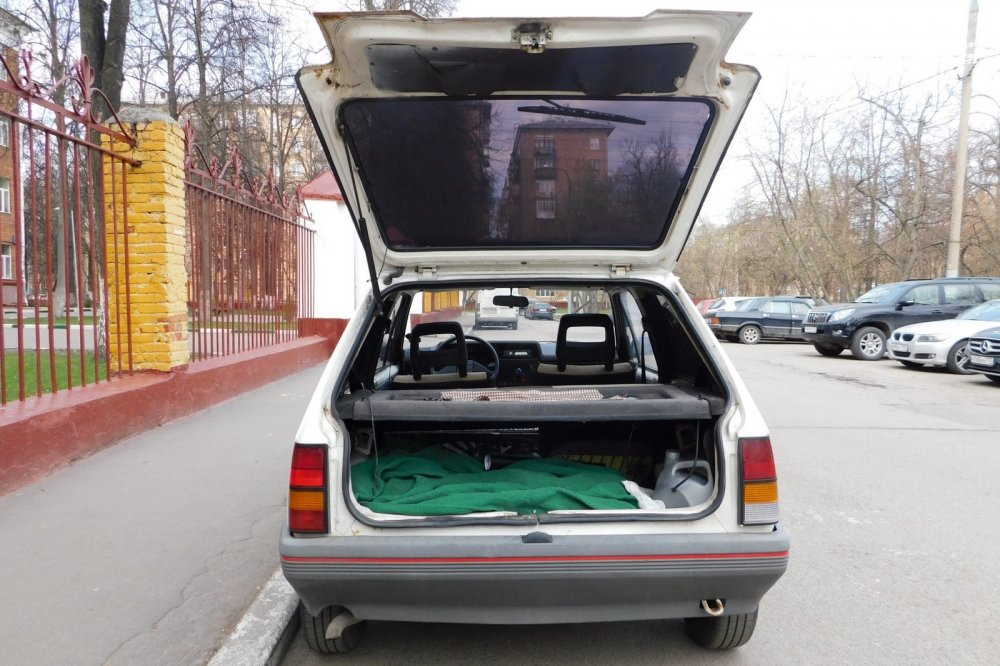 Третья дверь открывается тем же ключом, что и обе боковые. Никаких кнопок, повернул ключик в замочке — и дверца сама пошла вверх на газовых упорах. Проём огромный, погрузочная высота минимальная. Вместительность оценить не возьмусь – выгружать всё имущество владельца нет времени и желания. Но вещи точно есть куда положить. А ведь снаружи машина почти «без хвоста»!