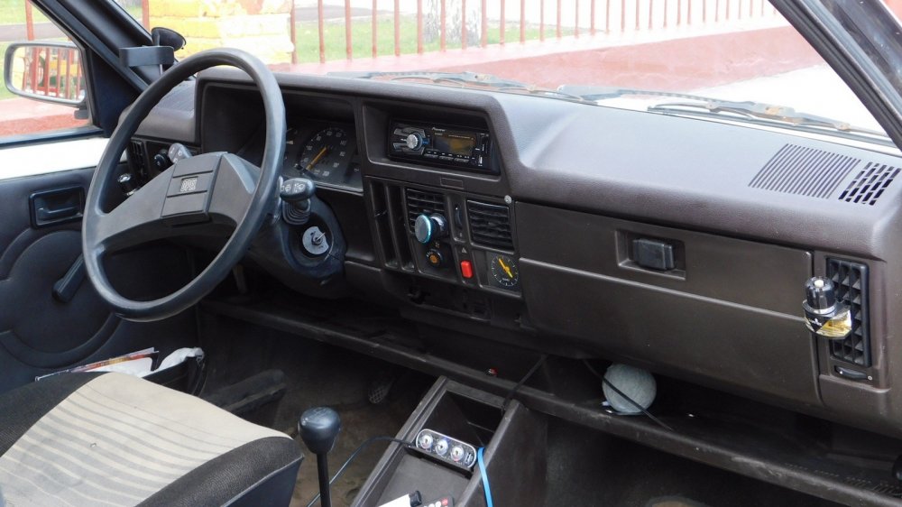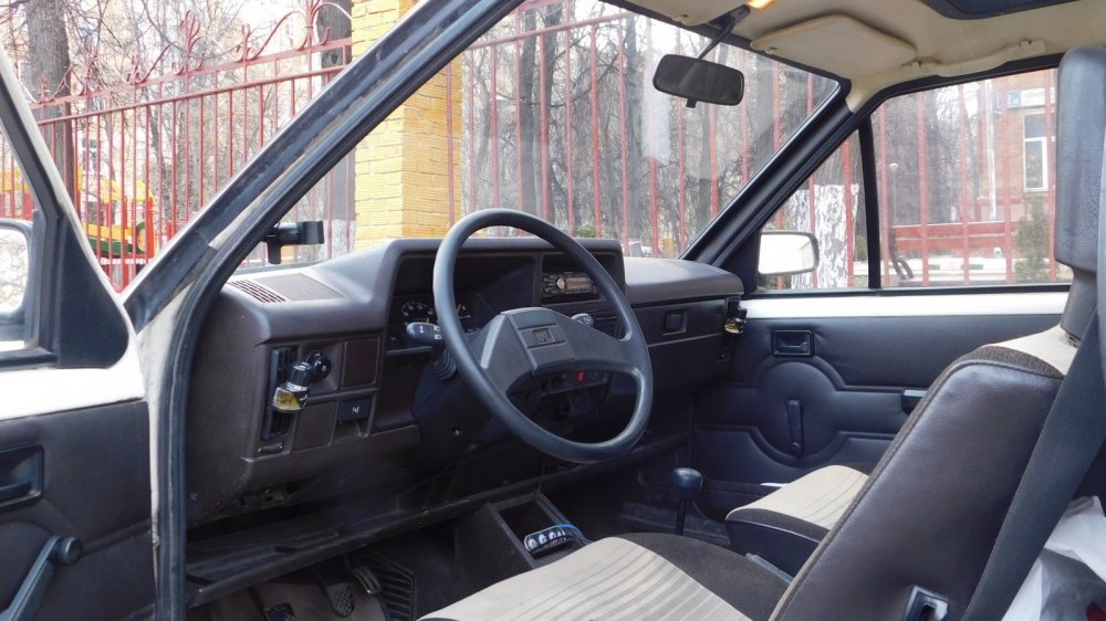 Отделка салона по моде восьмидесятых выполнена в тёмно-коричневой гамме. Качество материалов такое, что отдыхает весь советский передний привод того времени, вместе взятый.