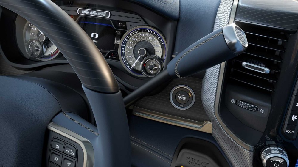 Для автомобиля предусмотрены три двигателя на выбор: базовый бензиновый 6,4-литровый V8 HEMI (415 л.с., 581 Нм) и новый 6,7-литровый турбодизель Cummins с двумя степенями форсировки: младшее исполнение выдаёт 375 л.с. и 1152 Нм, старшее – 405 л.с. и 1356 Нм. По крутящему моменту топовый Cummins превосходит фордовский дизель V8 Power Stroke (1268 Нм), что ставится на пикапы F-Series, и джи-эмовский Duramax V8 (1234 Нм), которым снабжаются Chevrolet Silverado HD, так что Ram HD отныне по праву считается самой тяговитой моделью в своём классе. В пару к могучему дизелю ставится 6-ступенчатая гидромеханическая АКП японской фирмы Aisin, а бензиновый агрегат идёт в комплекте с родной 8-ступенчатой коробкой TorqueFlite. Любопытно, что у бензиновых версий селектор «автомата» выполнен в виде шайбы и располагается справа внизу от руля, а дизельные щеголяют традиционной кочергой.