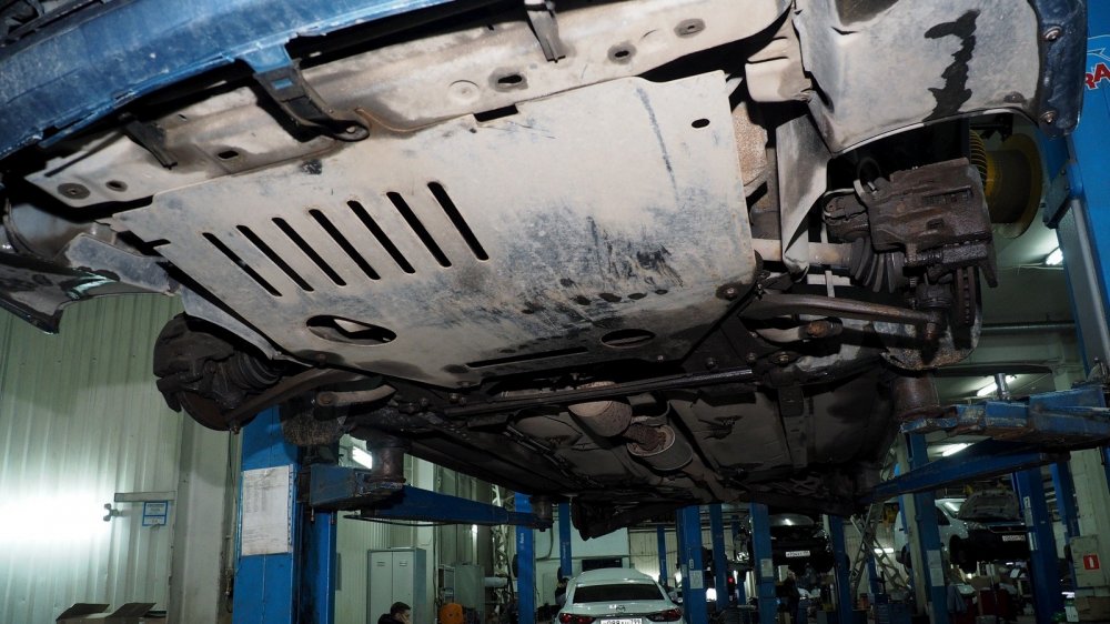 А вот с ходовой, подвеской, тормозной системой ситуация несколько иная: тут неоригинальные детали могут оказаться даже лучше оригиналов… Например, установленные на заводе тормозные диски сточились и потребовали замены через 25 тысяч км., а вот диски АТЕ, на которые их заменили, стоят до сих пор, и хоть бы хны: остаточная толщина передних составляет 22.8 мм (при минимуме в 22), а задних — 9.8 мм (при минимуме в 8). Осмотр, правда, показал, что провода на правом переднем датчике износа тормозных колодок оборваны и требуют замены. В остальном специалисты Major Auto при осмотре на подъемнике выявили люфт правой стойки заднего стабилизатора поперечной устойчивости, а также необходимость замены текущего сальника правого привода и шланга, соединяющего гидроусилитель с бачком. В общем, ничего криминального…