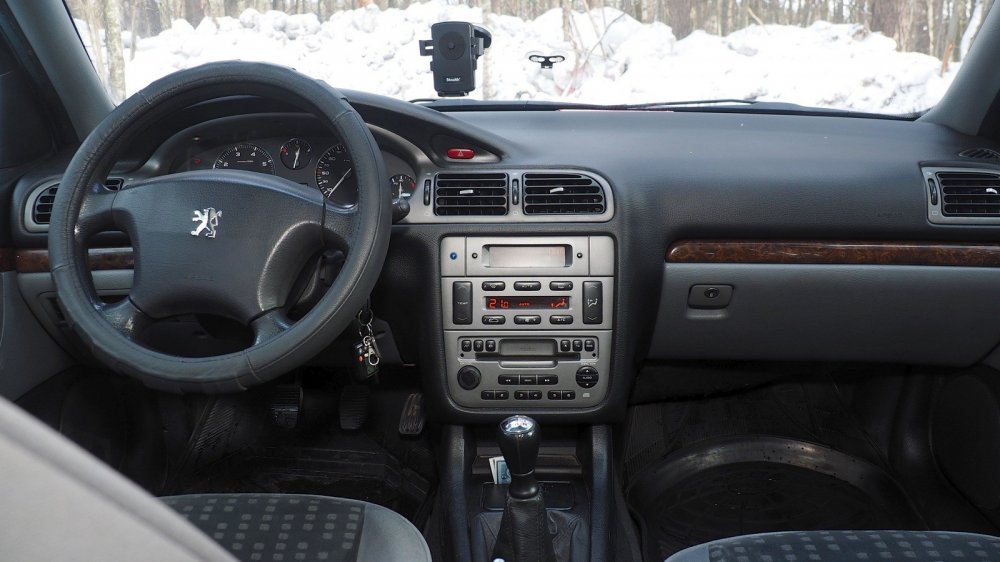 Правда и расход в городе получается довольно приличный: он не опускается ниже 11.5 л/100 км, даже если не «давить на тапочку». Если ехать чуть азартней, то выходит где-то 12.5 л. А вот на трассе, по словам Сергея, автомобиль кушает мало, даже получается опустить расход примерно до 6.5 литров, причем на скорости отнюдь не 90, а 110-120 км/час. Peugeot вполне способен поддерживать скорость до 170 км/час, но расход при этом, естественно, несколько возрастет. По сравнению с современными французскими моделями, тормозит 406-й не так резко, и позволяет точно дозировать усилие на педали. При этом из электронных помощников автомобиль оборудован только АБС.