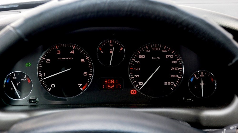 Внутри возраст модели чувствуется куда как более остро. И комбинация приборов с пятью кругляшами, и архитектура передней панели — все это по нынешним меркам выглядит как-то простовато. Я уж молчу про дисплей бортового компьютера, больше похожий на индикатор калькулятора из моей студенческой молодости... Удивляет наличие аналогового указателя температуры масла, причем это не контрольная лампа, а стрелочный прибор. Похоже, такой набор приборов достался автомобилю от спортивных версий.