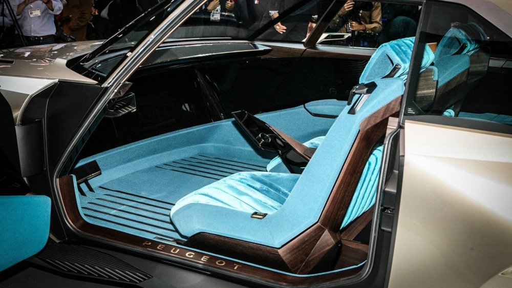 Понятно, что даже ретроконцепт по нынешним временам должен быть автономным, но инженеры Peugeot всё же предложили компромисс: если хочешь, управляй машиной сам – вот тебе рулевое колесо, а если устал – посмотри телевизор. Одним нажатием кнопки руль убирается в нишу, а кресло переводится в комфортный режим…