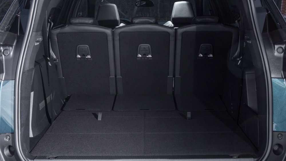 Действительно, автомобиль щеголяет огромным багажником, причем перемещая задние сиденья, его объем можно изменять от 780 до 1 060 литров для версий без третьего ряда сидений и от 702 до 952 литров для семиместных автомобилей. Естественно, разложенные сиденья третьего ряда съедают практически весь доступный багажный объем, зато на них вполне помещаются взрослые люди среднего роста, а сложив второй ряд, вы можете перевезти в автомобиле груз объемом в два кубометра!