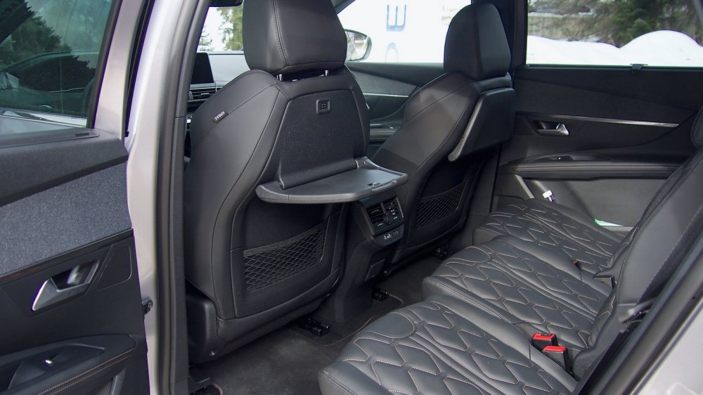5008 – это SUV, то есть «спортивно-утилитарный» автомобиль. Ну, с утилитарностью у него полный порядок… Начнем с того, что второй ряд состоит из трех отдельных сидений, так что каждый из трех пассажиров может устроиться с полным комфортом. Отдельных зон климатического контроля для них не предусмотрено, но регулировать потоки воздуха они могут. Плюс в их распоряжении – штатный инвертор с розеткой на 220 вольт, а в спинках передних кресел есть откидные столики. В общем, желающие могут даже кофейку себе заварить на ходу — естественно, если путешествующая компания в этот момент катит по магистрали с качественным покрытием.