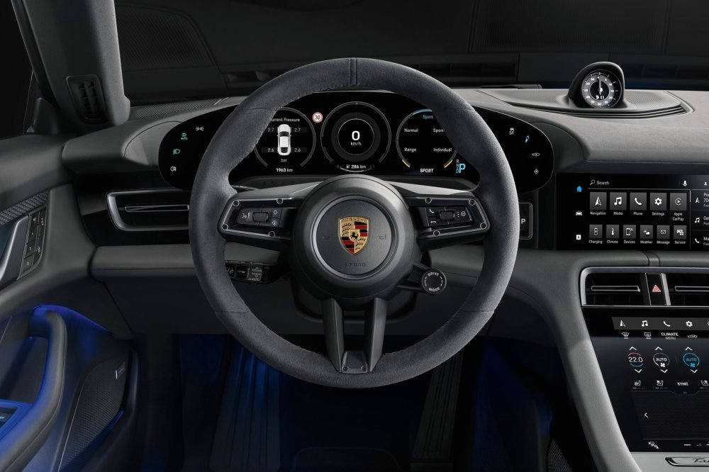 Для Porsche Taycan 4S кроме того будет доступно исполнение Plus, цена которого пока не объявлена. Машина с «плюсом» имеет ту же батарею, что у Turbo/Turbo S, то есть на 93,4 кВт·ч, совокупная мощность электродвигателей увеличена до 420 кВт (571 л.с.), запас хода на одной зарядке – до 463 км. То есть Taycan 4S Plus – пока что самый дальнобойный в линейке (напомним, что Taycan Turbo может проехать на одной зарядке 450 км, Turbo S – 412 км).
