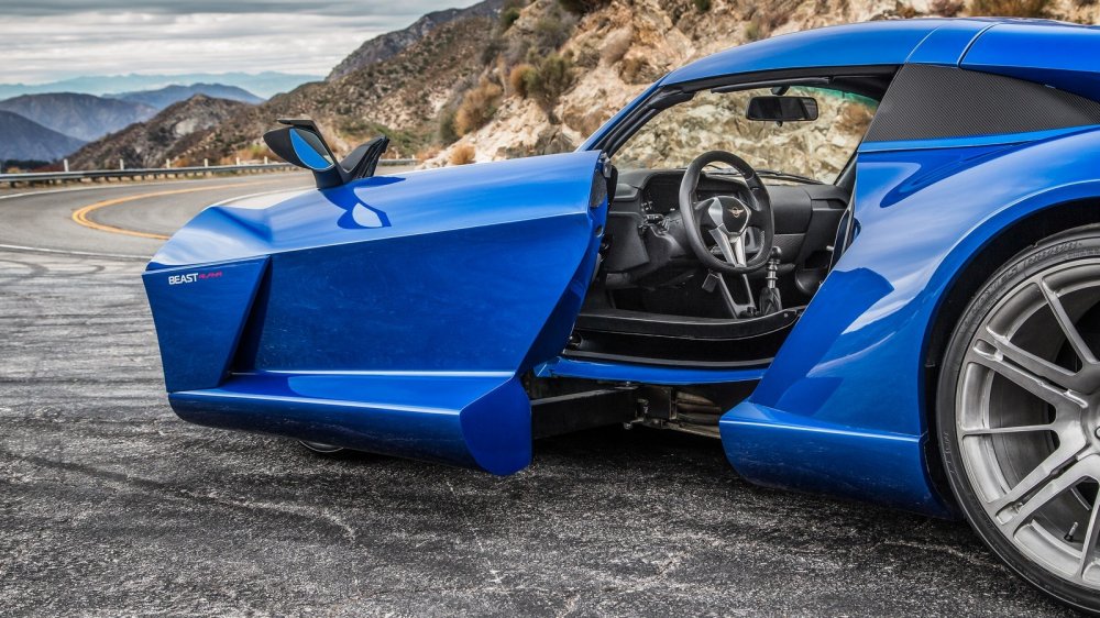 Уникальной чертой Rezvani Beast Alpha стал новый тип дверей SideWinder, практичность которых может вызывать вопросы, но выглядит эффектно. Длина Альфы составляет 4 145 мм, ширина – 1 981 мм, высота – 1 105 мм, а размер колесной базы – 2 345 мм.
