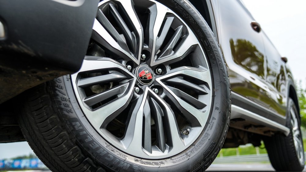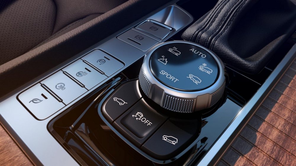 Полный привод тут не постоянный: в отличие от пресловутого «двухсотого» с дифференциалом Torsen, здесь многодисковая муфта, которая подкидывает около 40% крутящего момента на переднюю ось. Зато клавиша 4L, которую мы скоро встретим в салоне, "честная" и означает не только принудительное замыкание муфты, но и понижающую передачу с передаточным числом 2,48. На внедорожные качества старательно работает и дифференциал от Eaton в заднем мосту, замыкающийся при разнице скоростей вращения колес свыше 120 об/мин. С учетом всего этого арсенала максимальный угол преодолеваемого подъема у Roewe составляет 31,5 градус — при том, что, к примеру, у его земляка, Haval H9, этот параметр составляет 24,5 градуса. Однако те, кому не интересна вся эта оффроудная требуха, могут сэкономить несколько десятков килограммов и тысяч юаней: базовый привод у RX8 – задний. А это намекает на более «премиально-городское» позиционирование автомобиля.