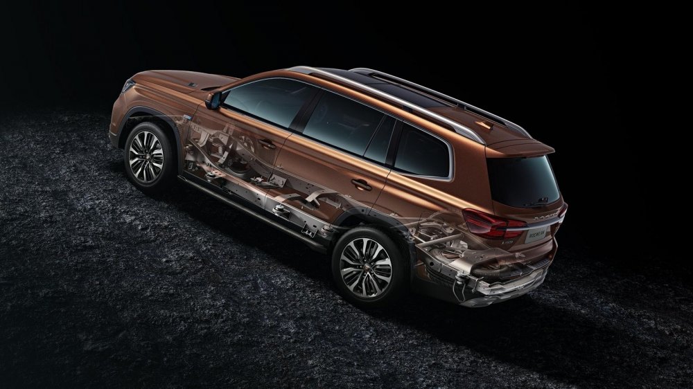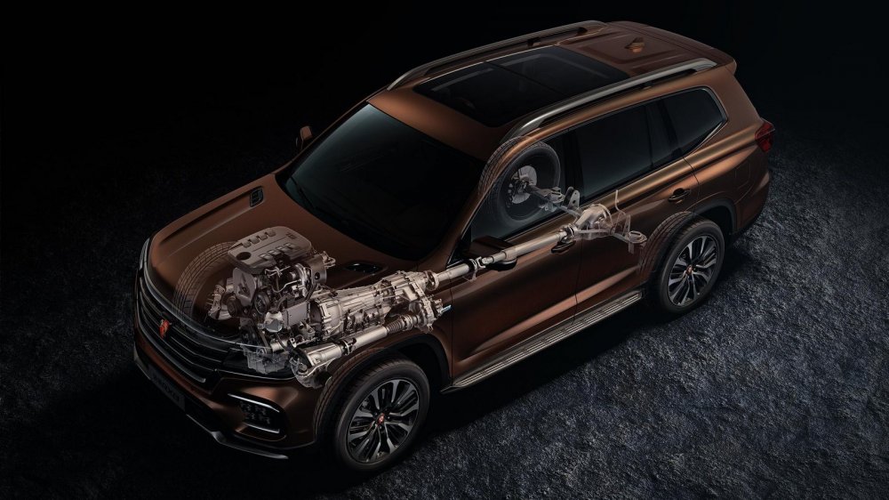 Под серьезной оболочкой скрывается то, чего и ожидаешь увидеть: лестничная рама и неразрезной задний мост. Правда, пневмобаллонов, как у того же Land Cruiser, здесь нет – подвеска пружинная. Но с другой стороны, спасибо, что не рессоры: ведь исходной технической основой для RX8 послужил пикап. Тут история простая, но долгая: бренд Roewe, покоящийся на выкупленной китайцами у британцев компании Rover, принадлежит концерну SAIC – и ему же принадлежит бренд Maxus, под которым в недавнем прошлом вышел сначала пикап T60, а затем и внедорожник D90. Собственно, под D90 платформу пикапа и подставили, попутно заменив утилитарные рессоры на более комфортные пружины. Ну а Roewe RX8 получил ту же основу, лишившись, правда, 10 сантиметров длины колесной базы.