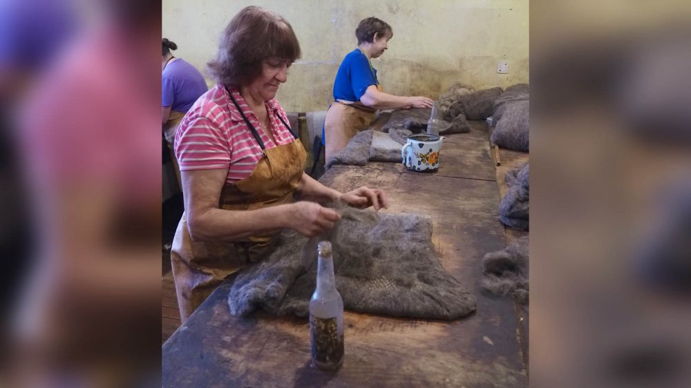Валенки… Еще не так давно это была самая популярная, самая доступная и самая народная зимняя обувь. Недаром в Мышкине, в соответствующем музее, стоит памятник «Валенку — от благодарной России». Но на сегодня в Северо-Западном регионе осталась лишь одна-единственная мастерская, в этой самой Вотче. Производство — чисто ручное, и работает всего несколько человек. Единственная механизация — шерстобитный станок, который разбивает и расчесывает овечью шерсть. Потом женщины на столах раскладывают пласты шерсти по специальным шаблонам, а дальше за дело берутся мастера-катали. При помощи кипятка, деревянных колодок и специальных плоских скалок мастер и превращает ком шерсти в цельный валяный сапог. Работа, прямо скажем, очень тяжелая… Кстати, цельнокатаные валенки появились в России только в XIX веке, а до этого популярностью пользовались войлочные башмаки, которые называли «коты» или «чуни». Они были теплыми, но не слишком прочными. Известен и изобретатель цельных валяных сапог — житель Семеновского уезда Михаил Карпычев. Его валенки были представлены на первой Всемирной выставке в Лондоне в 1851 году.