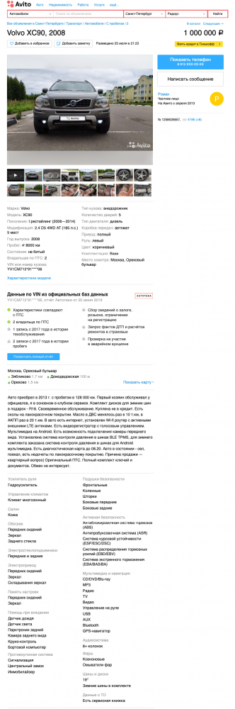 Многим в жизни по тем или иным причинам приходит в голову идея о покупке Volvo. И если до этого человек о Volvo не думал, то с большой долей вероятности на внутренний вопрос «какую же именно машину купить» он ответит просто – самую-самую. То есть, говоря о вторичном рынке – самую большую из неновых. Учитывая долгую конвейерную жизнь, неудивительно, что цены на эти кроссоверы сильно разнятся: по данным наших коллег из Авито Авто, это 350-400 тысяч за самый дешевый вариант «на ходу с документами», в то время как самые дорогие предложения на рынке уходят далеко за миллион рублей. Таким образом, это дает вполне осязаемые шансы купить отличный автомобиль примерно за миллион – надо лишь заранее выяснить, на что обратить внимание при покупке.