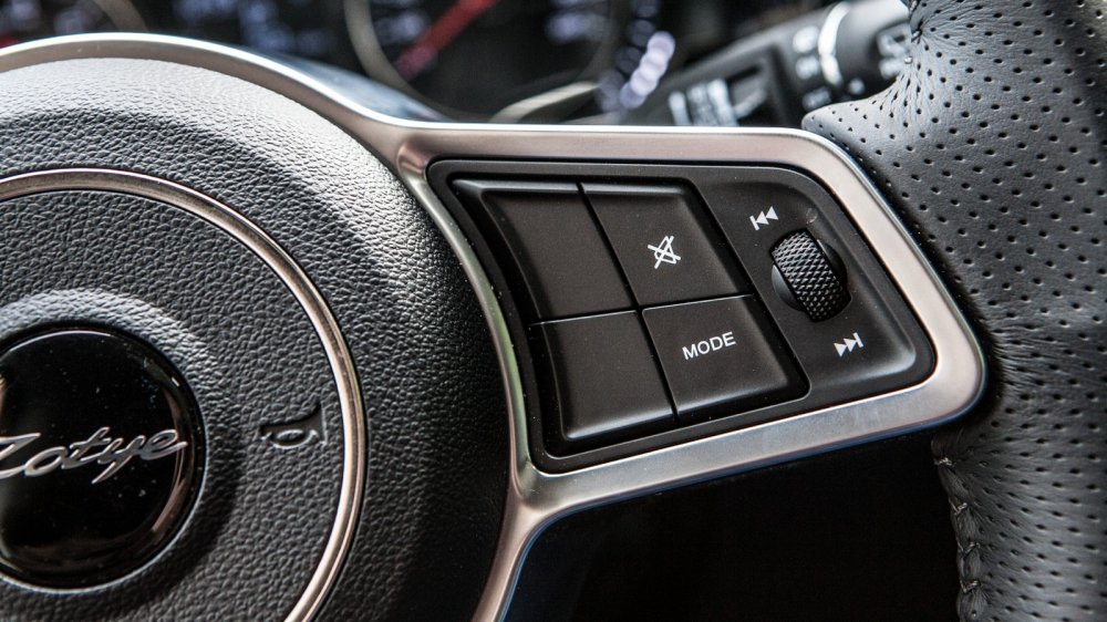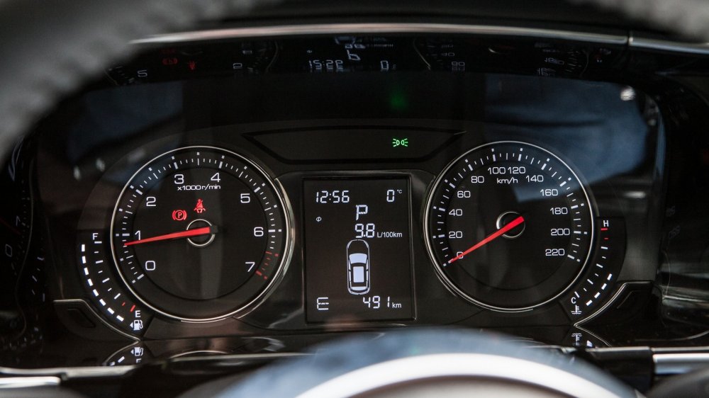 Другое дело, что бортовым компьютером на аналоговом щитке почему-то нельзя управлять кнопками на мультифункциональном руле: на нашем тестовом образце на обоих спицах руля оказались заглушки. Вместо этих заглушек действительно размещаются кнопки управления данными, но только на версии с цифровым щитком! Чтобы управиться с бортовым компьютером на аналоговой версии, нужно тянуться рукой к механической кнопке, размещённой в правом нижнем углу приборного щитка. Всё той же кнопкой последовательно придётся обнулять показания, переходя от одной вкладки к другой. Неудобно. С левой стороны на щитке тоже есть кнопка, но она вообще не задействована…