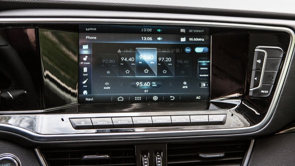 Ещё из особенностей китайского национального автомобилестроения: навигация в машине предусмотрена, но она пока, увы, на китайском языке, равно как и некоторые непонятные позиции на экране управления мультимедийной системой. Между тем, та же вкладка с радио – вполне читаемая, простая и логичная. Разве что изображению не хватает чуть большей контрастности.