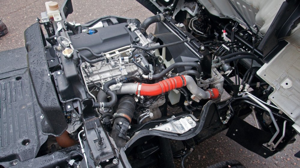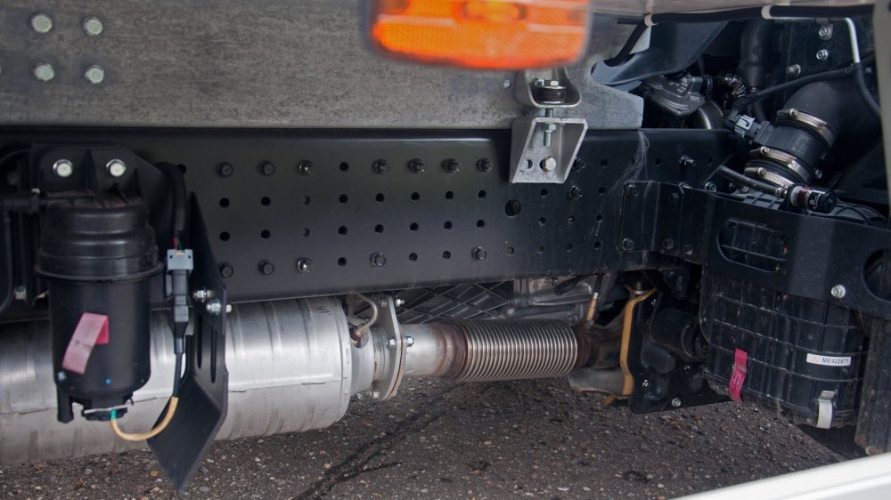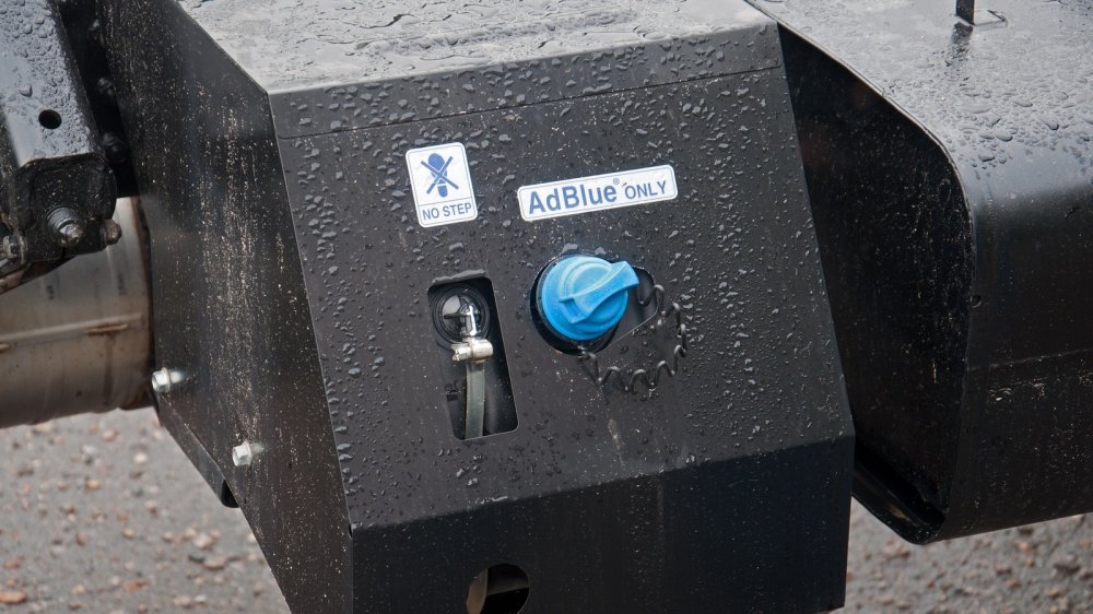 Кстати, по внешнему виду машины можно определить, какой мощности у неё стоит мотор: более мощному, помимо обязательных для дизелей Евро-5 системы рециркуляции выхлопа (EGR), сажевого фильтра (DPF), полагается ещё и система нейтрализации выхлопа мочевиной (SCR), так что внизу по правому борту у машин с мотором в 175 л.с. стоит бак для раствора AdBlue.