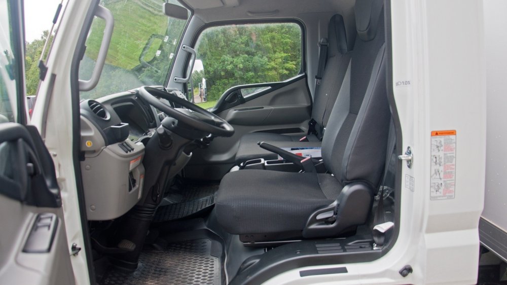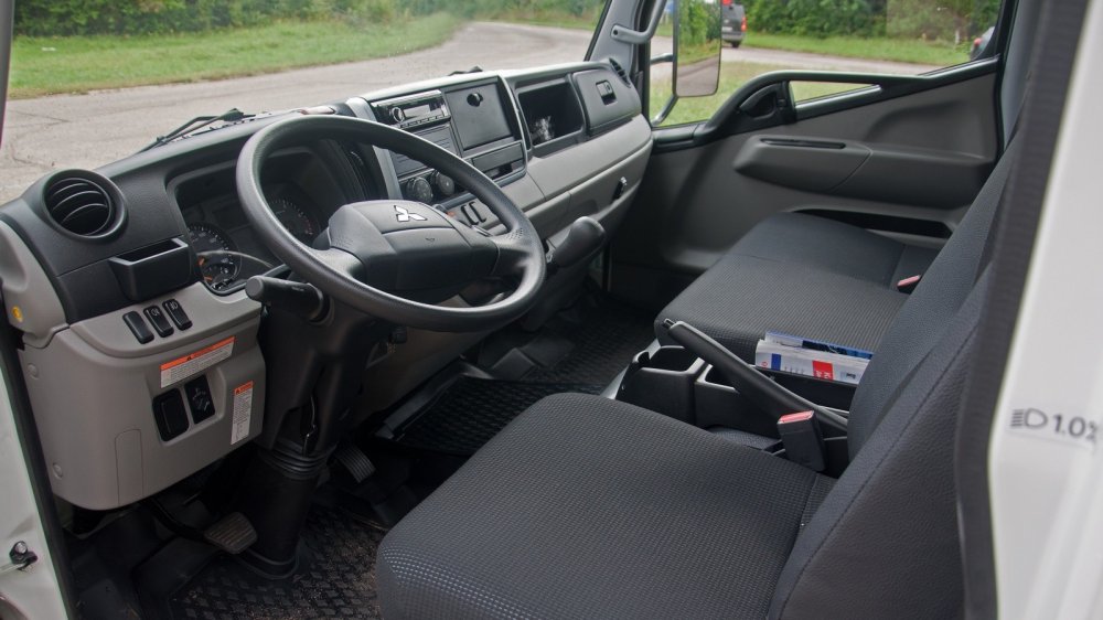 Если вы когда-нибудь заглядывали в кабину рабочего мало- или среднетоннажного грузовика, то наверняка видели, что у него там творится. Частенько можно наблюдать, как по всей панели и сиденьям раскинуты накладные и путевые листы, в пепельнице валяются предохранители, а в уплотнитель бокового стекла воткнута отвёртка. У более рукастых водителей — деревянный клинышек. В Кантере такого не будет. Во-первых, тут есть множество отсеков для мелочей, включая потолочные ниши для документов и запираемого бокса перед пассажиром, во-вторых, тут нет механических стеклоподъёмников — они электрические.