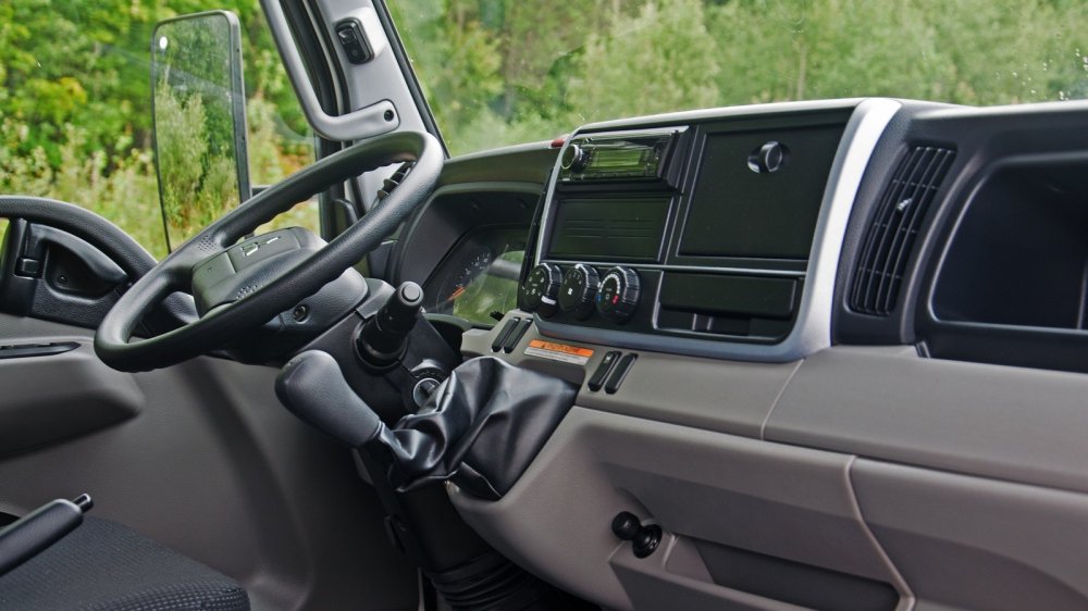 Интерьер кабины производит исключительно приятное впечатление. Немного его строгую красоту портит пошловатый рычаг МКП, но важнее, что он не стоит на полу, а значит, и не мешает при необходимости шататься по кабине как голодный медведь, нечаянно проснувшийся среди зимы. Места тут и вправду много, и кабина эта трёхместная не условно, а очень даже полноценно.