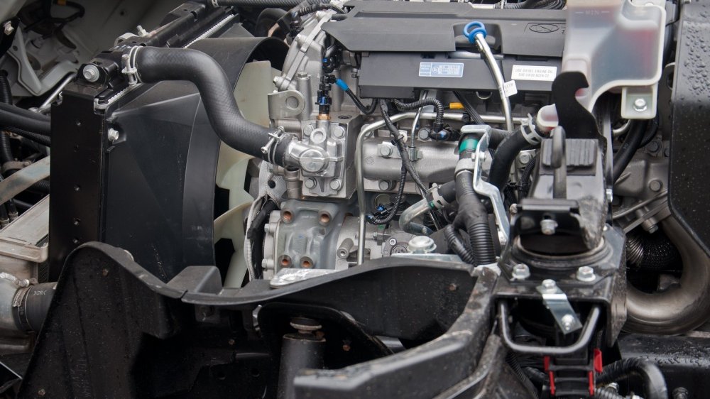 На Canter TF может быть два мотора: 150 и 175 л.с. Максимальный крутящий момент первого дизеля — 370 Нм при 1 320 об/мин, второго — 420 при 1 600. Нетрудно догадаться, что это один и тот же трёхлитровый мотор 4Р10 с разными прошивками. Думаю, любители тюнинга уже догадались, что если первому мотору чуть-чуть больше дунуть в турбину, то он станет вторым мотором. Но это совсем не руководство к к действию, а лишь информация к размышлению.