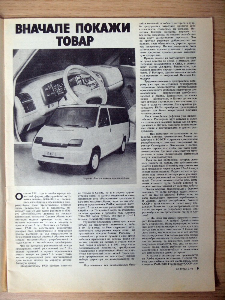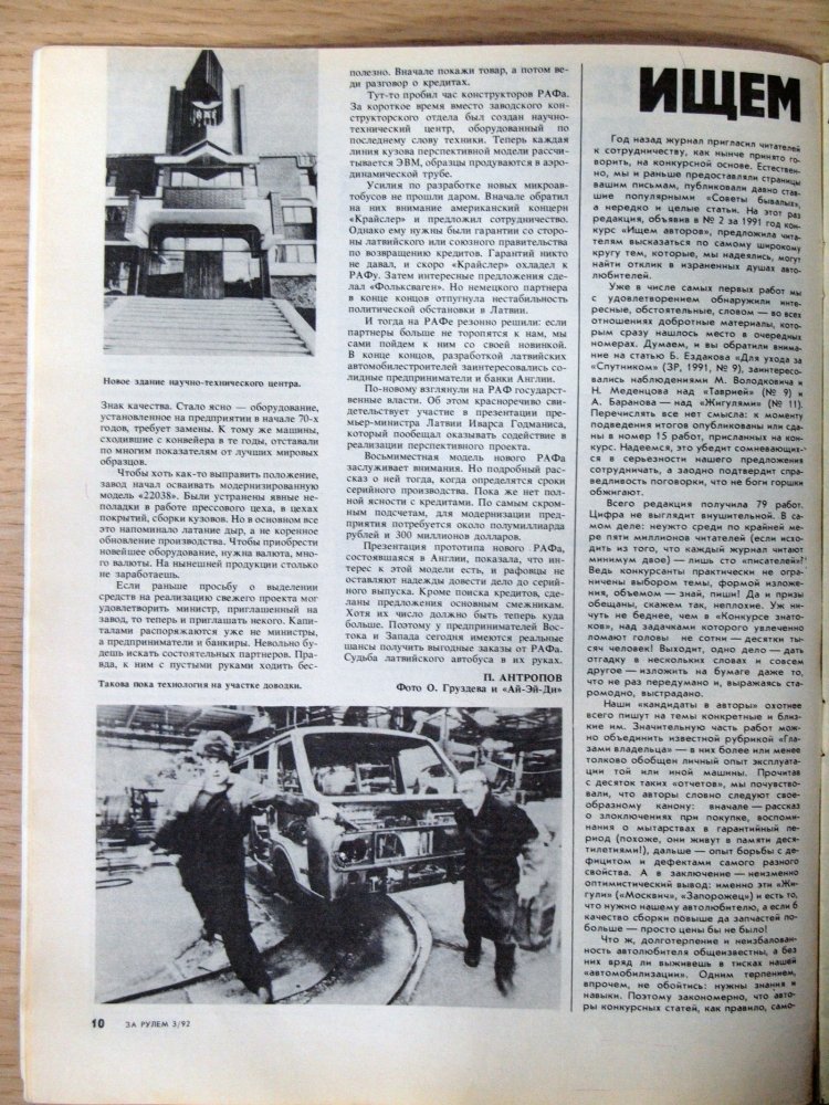 В мартовском номере журнала За Рулем за 1992 год опубликовали материал, посвященный и новому прототипу, и положению дел на самой фабрике