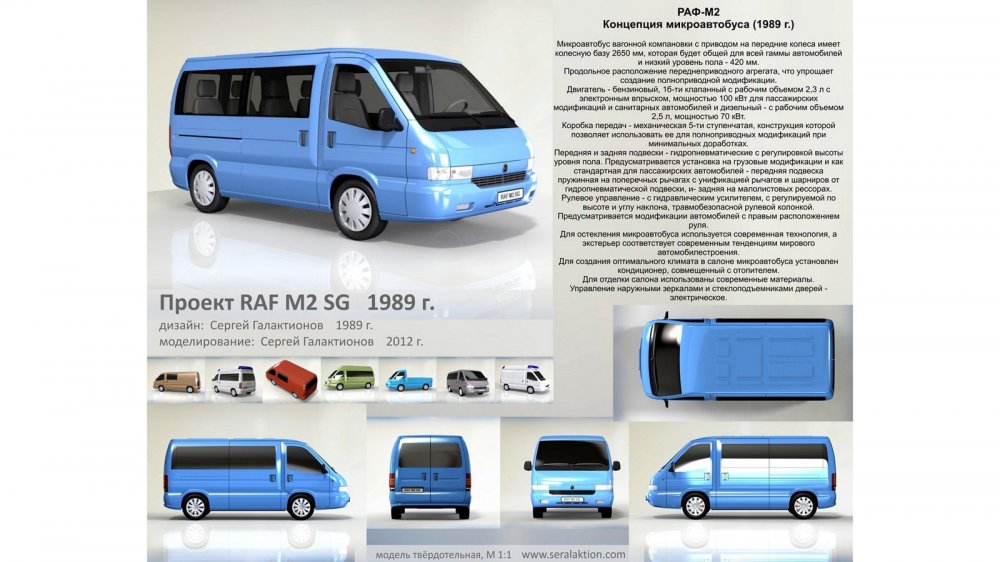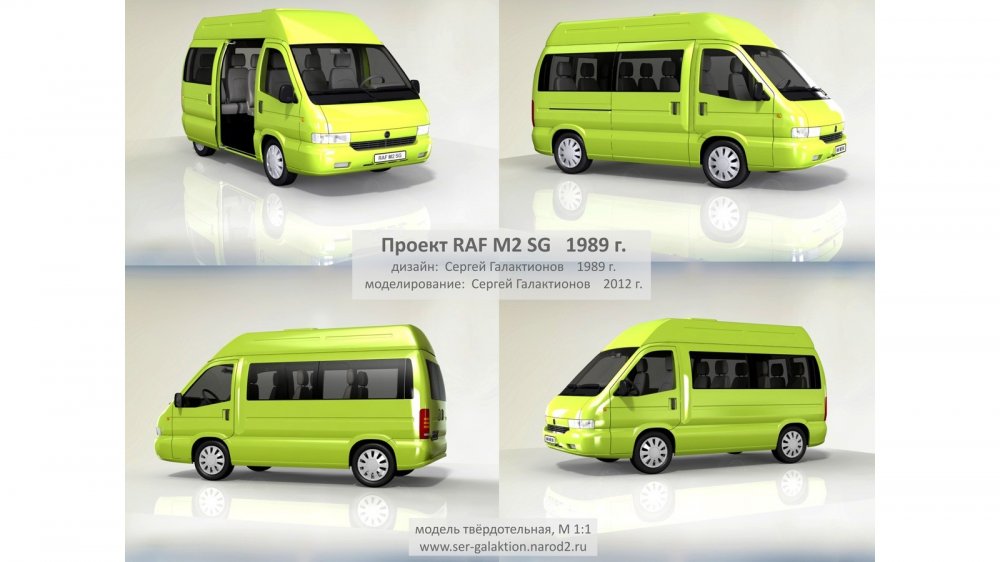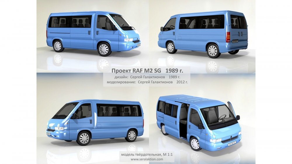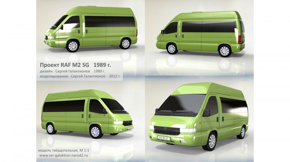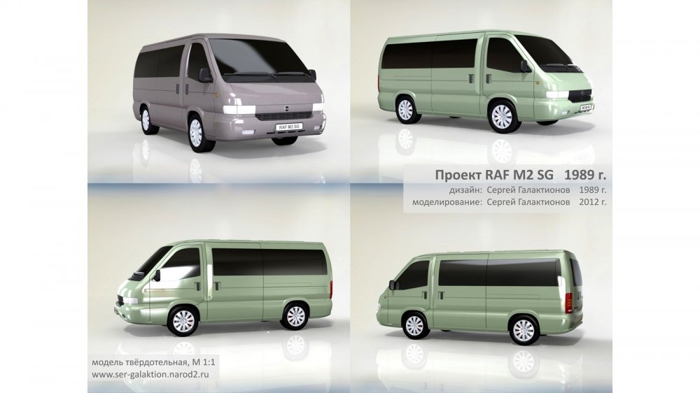 Но рижские конструкторы не опустили руки, а сделали ровно наоборот! На фабрике не остановились на "Роксане", а вернулись к ранним наработкам и занялись созданием укороченной переднеприводной версии микроавтобуса под названием РАФ-М2! Дизайн очередной "перспективы" разработали в НАМИ, 3D-модель «по старой дружбе» выполнили на ЗАЗе, и 20 декабря 1993 года новый прототип показали общественности. Интересно, что общая концепция (вагонная компоновка, дизайн кузова, макетирование) переднеприводного микроавтобуса РАФ-М2 на конкурсной основе была разработана дизайнером ИТЦ РАФ Сергеем Галактионовым еще в 1989 году и даже воплощена в виде пластилинового макета RAF M2 SG в масштабе 1:5.