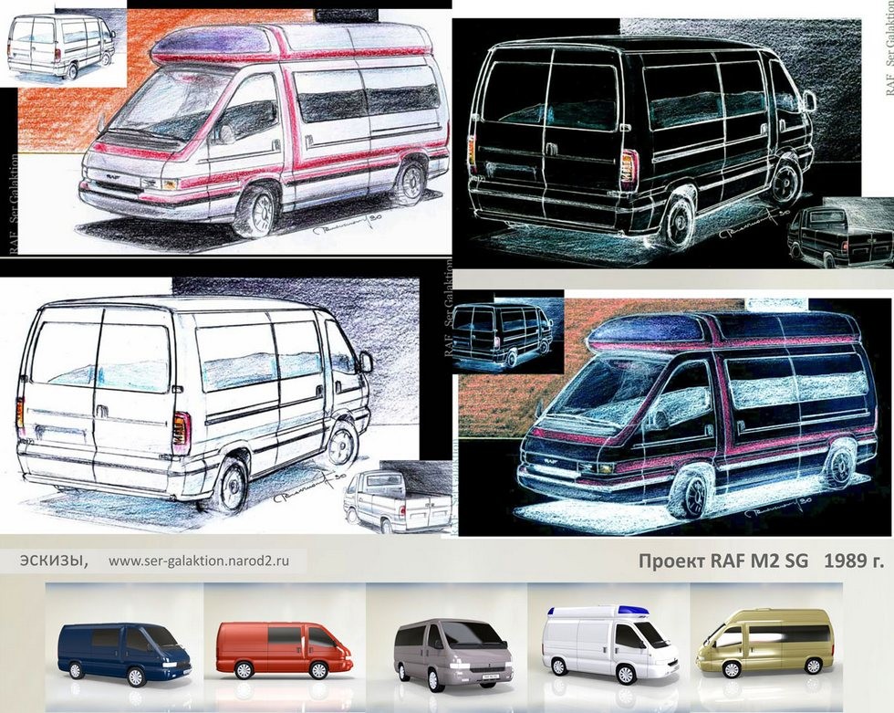 Эскизы Сергея Галактионова за 1989 год. Именно так почти 30 лет назад дизайнер представлял себе семейство переднеприводных однообъемников РАФ-М2