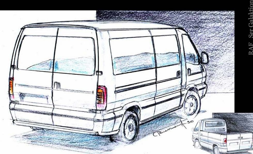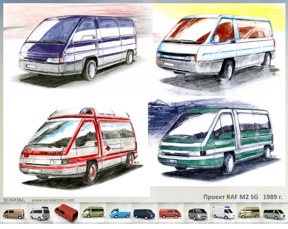 Дизайнеры ИТЦ РАФ иногда «для себя» делали эскизы на тему коллег по цеху. Вот как RAF M1 видел Сергей Галактионов, который разрабатывал переднеприводный RAF M2