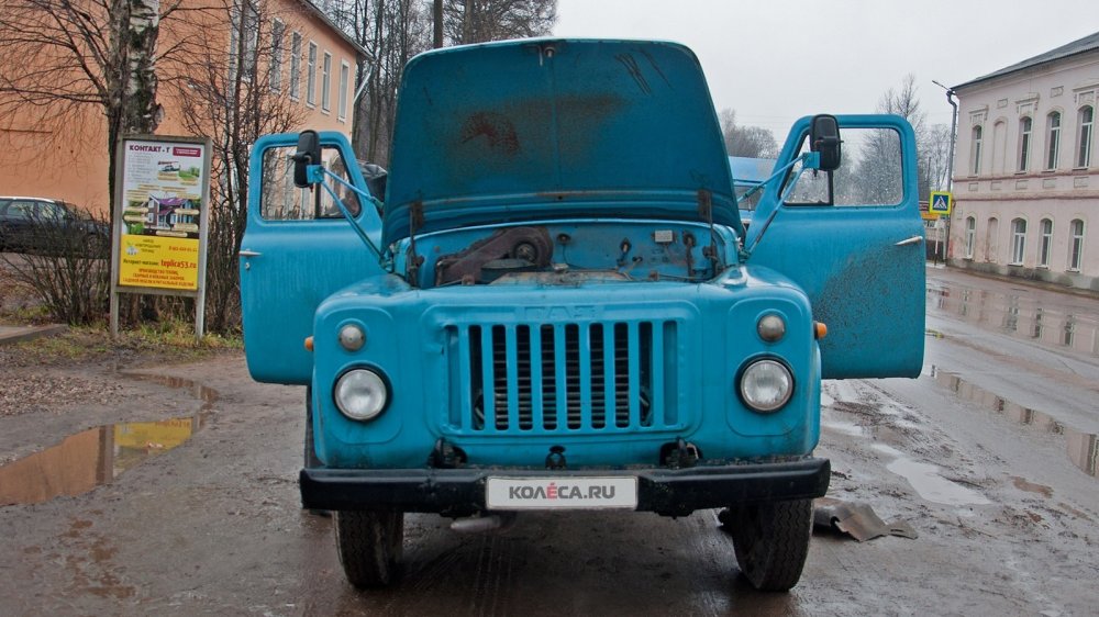 Для почти тридцатилетнего отечественного автомобиля “газон” сохранился неплохо. Конечно, лазить по нему с толщиномером так же глупо, как бросать пить 31 декабря, но многого мы от него и не ждали. Владелец воду в радиатор уже залил, так что нам остаётся только проверить уровень масла (он оказывается в порядке), поставить аккумулятор, подкачать вручную бензин и запустить мотор. Не сразу, но двигатель заработал, причём очень даже недурно: ровно, без стуков и перебоев. Но ехать ещё рано.