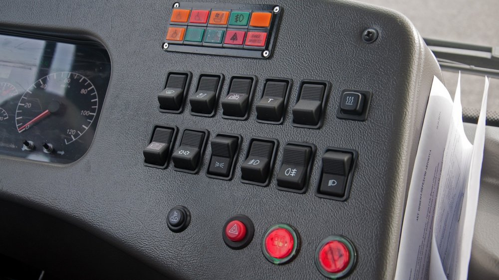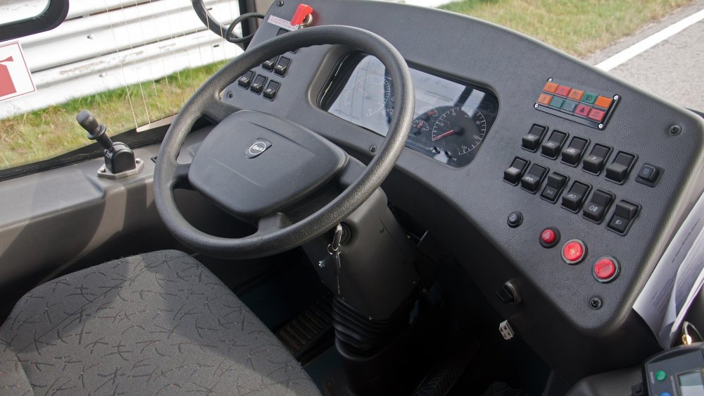 Во всём остальном салон тоже получился приятным. Даже расцветка кресел неожиданно жизнеутверждающая для общественного транспорта. К сожалению, на водительском месте картина совсем другая, но плакать от этого будем чуть позже. Пока — пару слов о технике.